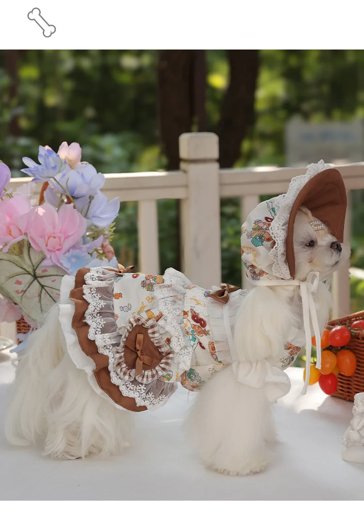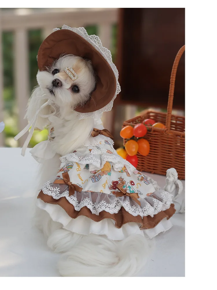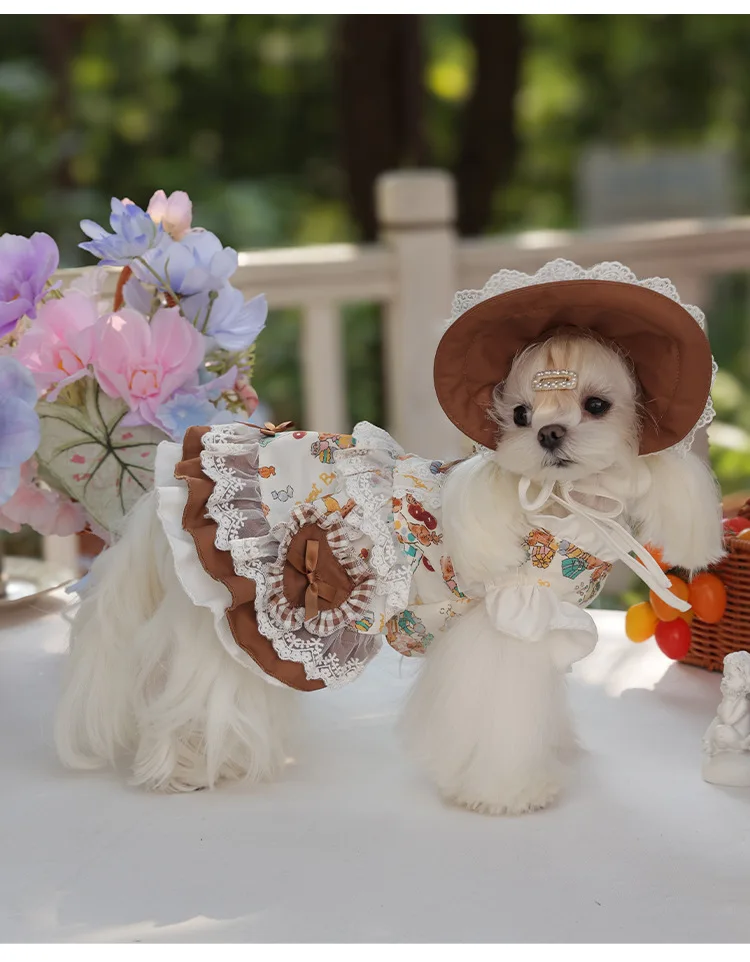 Lolita Pet Skirt High Quality Dogs Clothing Cute Dog Dress With Hat Laces Suit