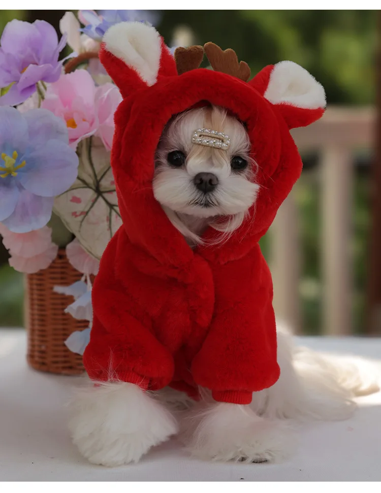 Autumn/Winter Warm Red Pet Clothing Puppy Small Dog Schnauzer Teddy Christmas Heavy Coat Christmas Elk Style