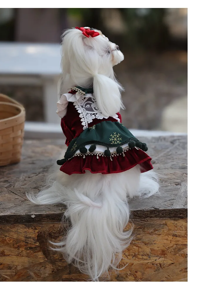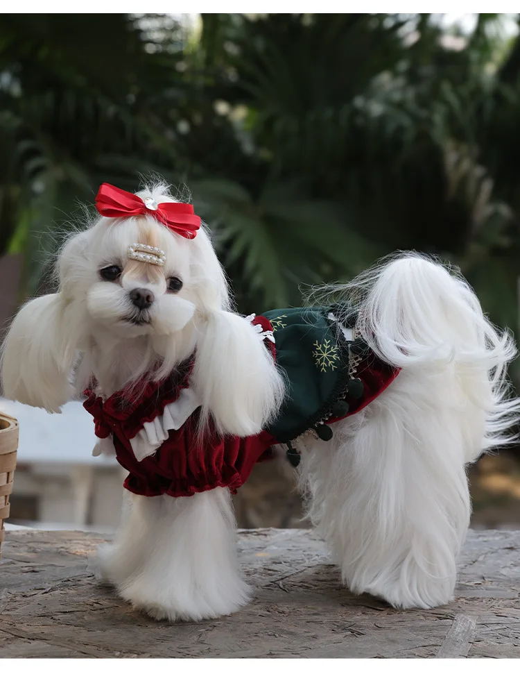 Pet Clothing Fall Velvet Hair Prevention Puppy Small Dog Dress Christmas Suits With Bow