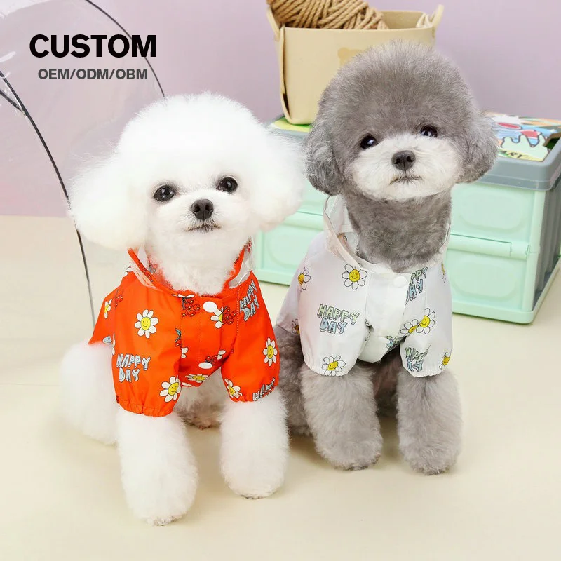 Wholesale Floral Pattern Dog Raincoat With Traction Buckle Two Legged Hooded Waterproof Dog Coat Pet Clothes