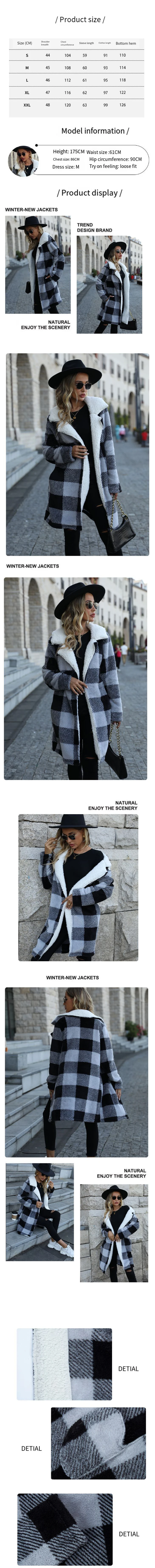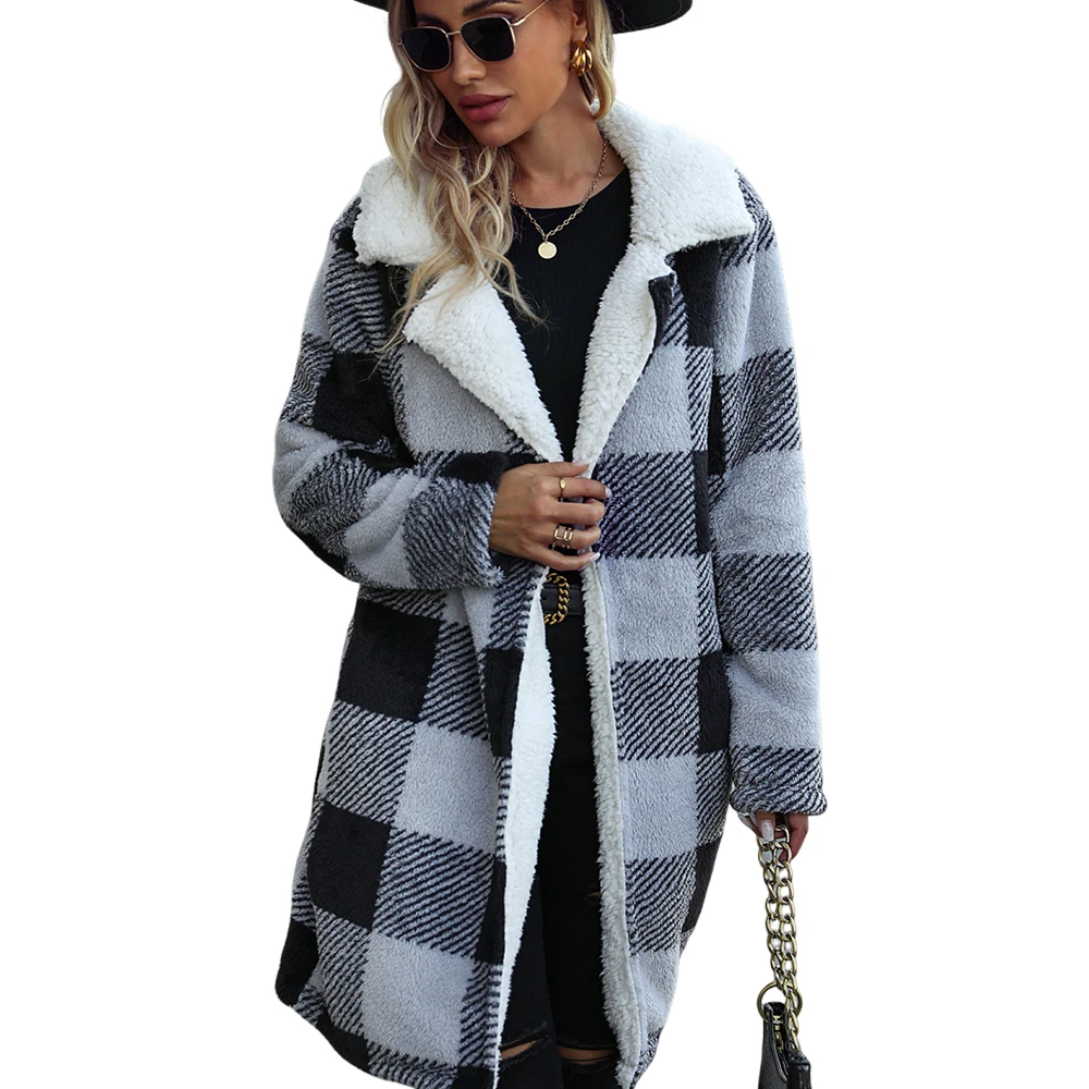 Wholesale 520gsm fleece jacket fur winter thick warm wool pocket plaid fuzzy plush long coat fleece jacket