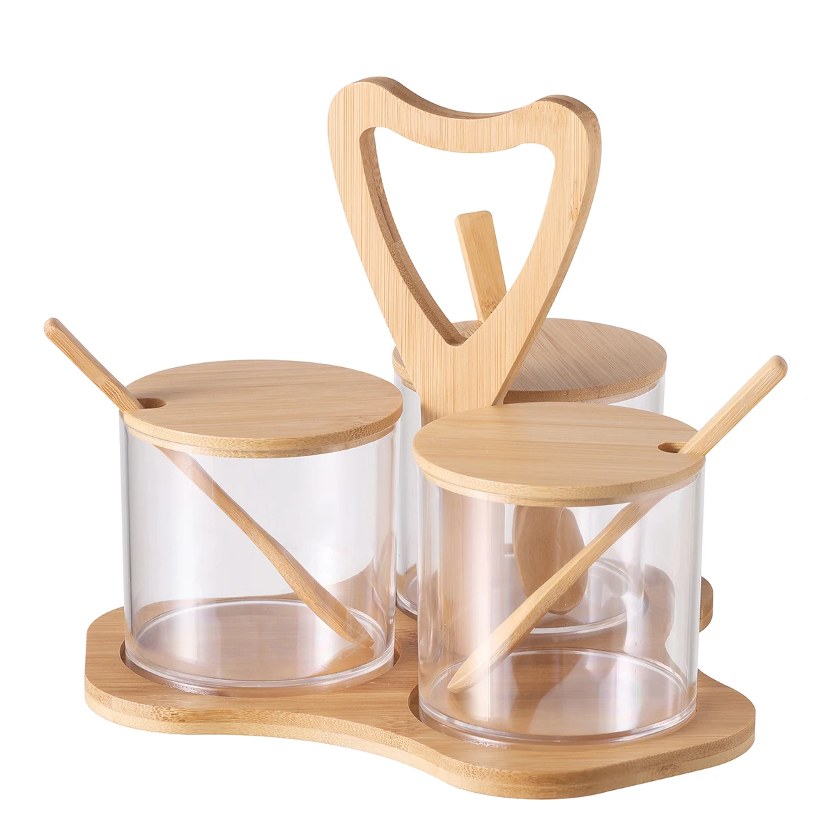 Kitchen condiment dispenser with bamboo lid Three moisture-proof seasoning jars