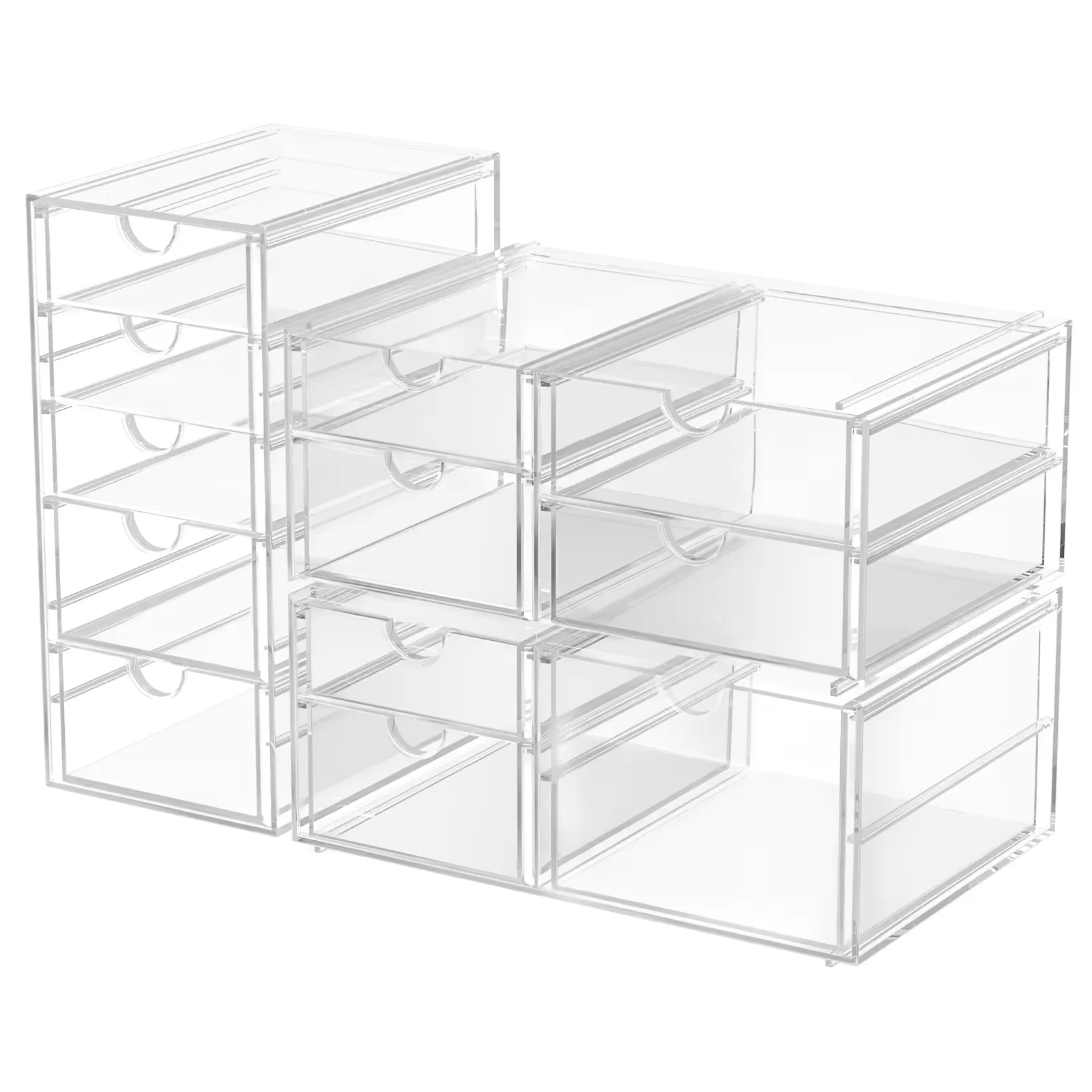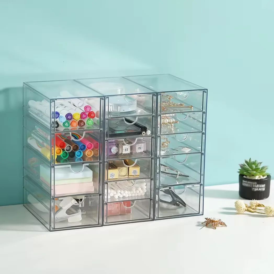 PET Modern 13-drawers Rectangle Transparent Plastic Eco-Friendly Desk Organizer Office Stationery Storage