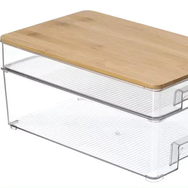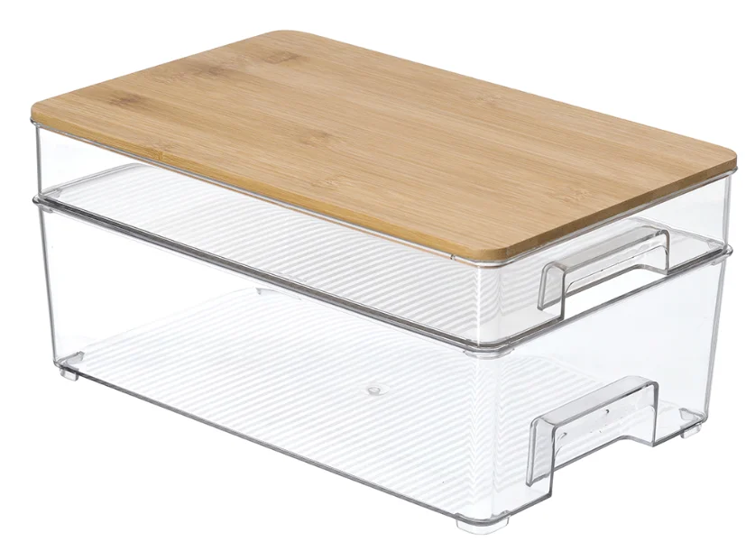 Fridge Organizer Food Containers Two Layers Large-sized Plastic Box Organizer Kitchen Storage Boxes & Bins with Bamboo Lid Type2