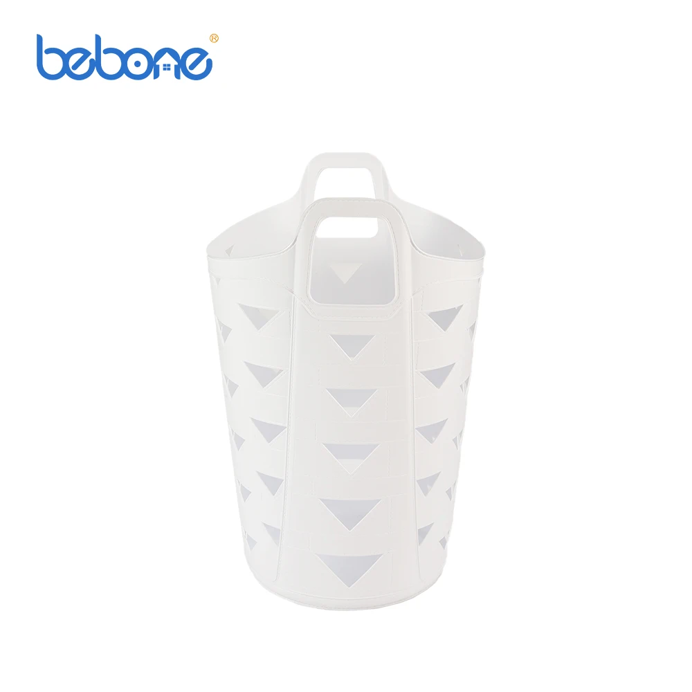 White bathroom Waterproof Portable round laundry hamper basket pe plastic laundry basket