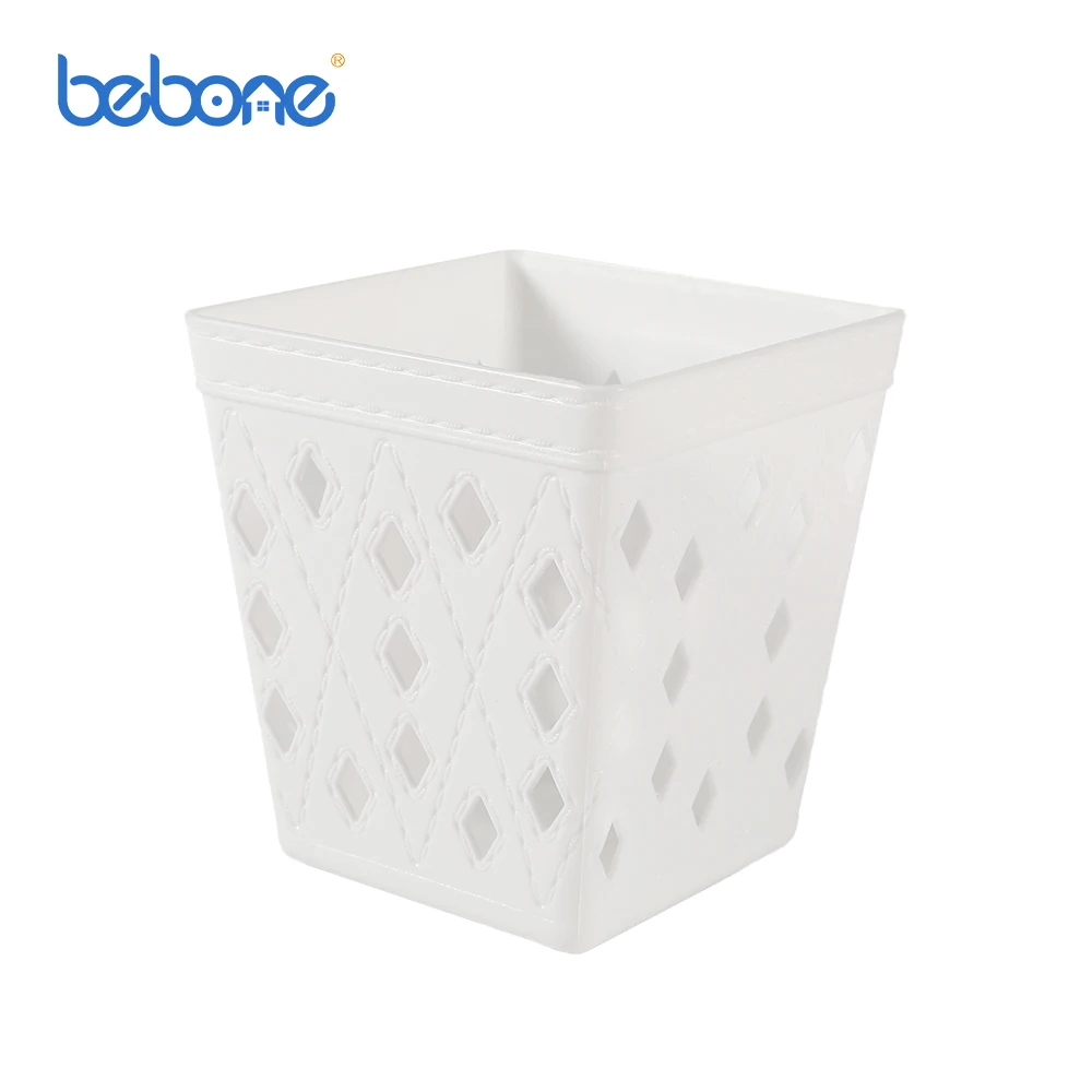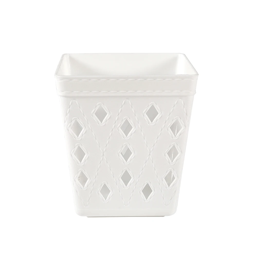 Square white Plastic square leather grain round small plastic pencil holder basket