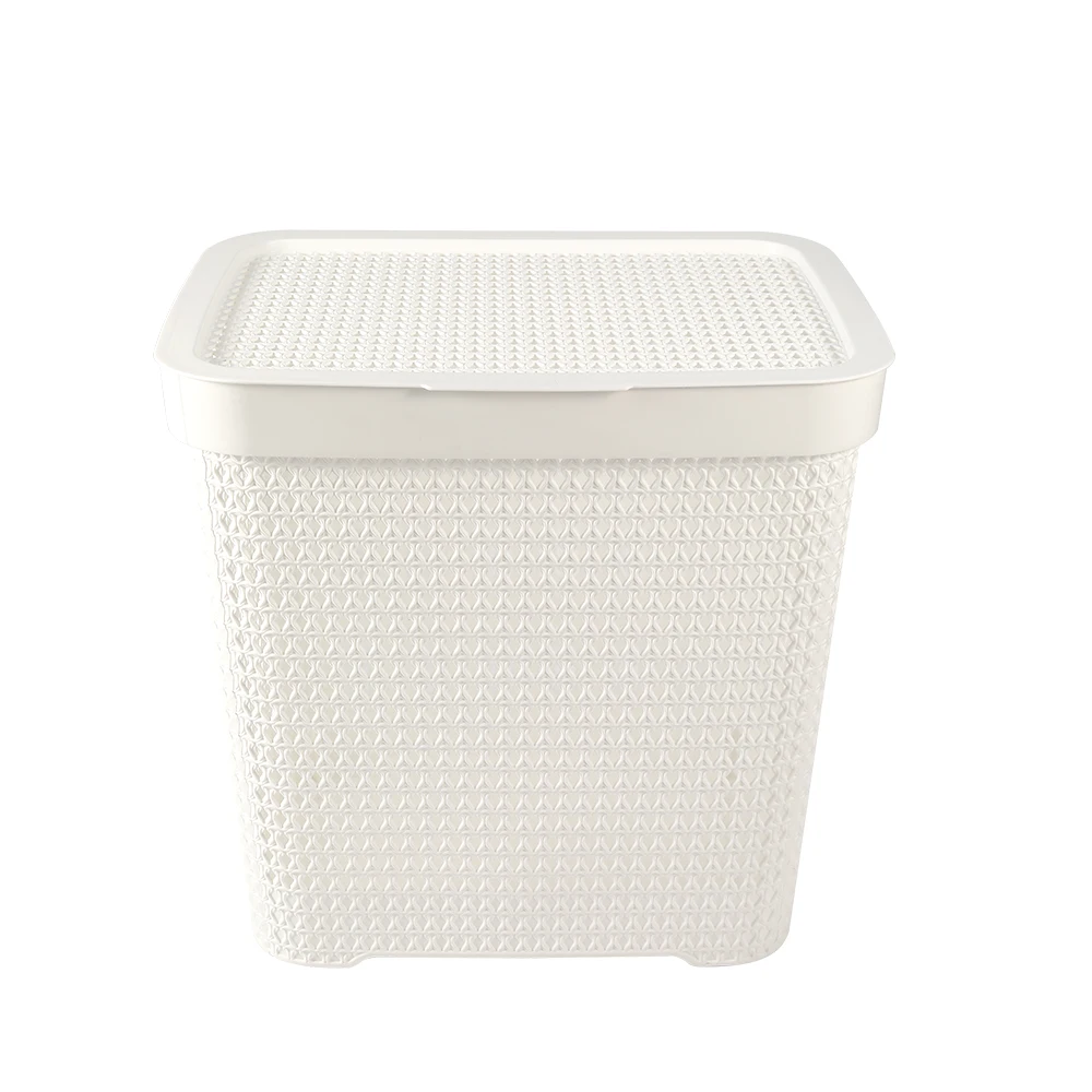 Laundry room portable white large versatile plastic laundry basket with lid