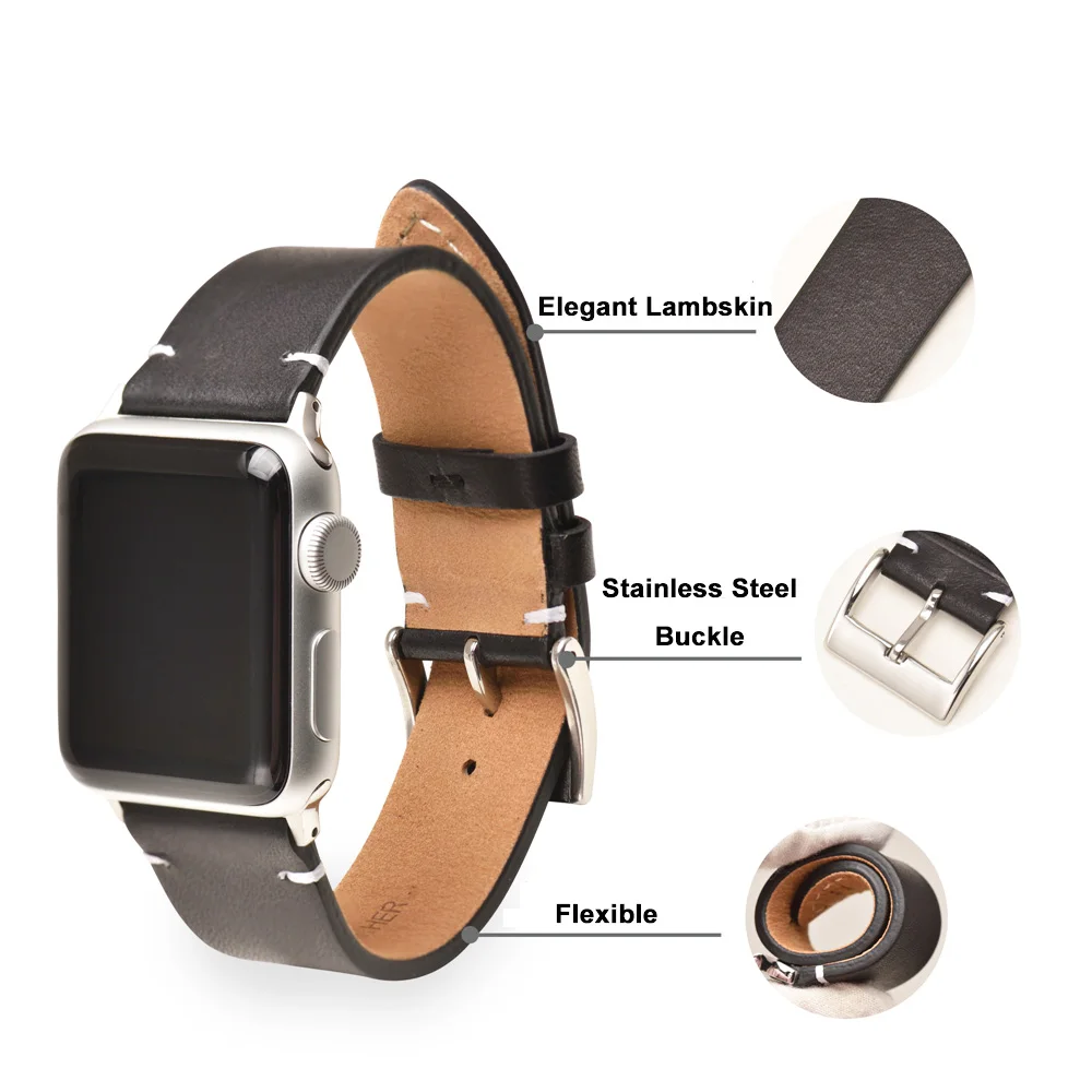 Unisex Soft Casual Lambskin Leather Watch Band Suitable for Appl Watch | ||