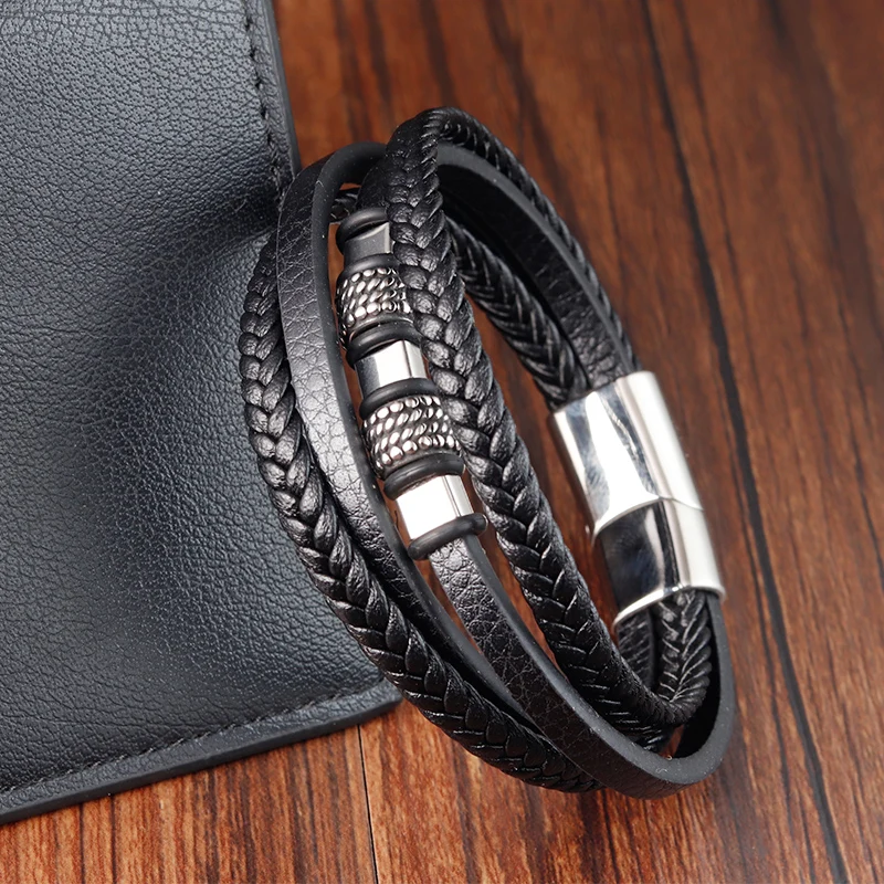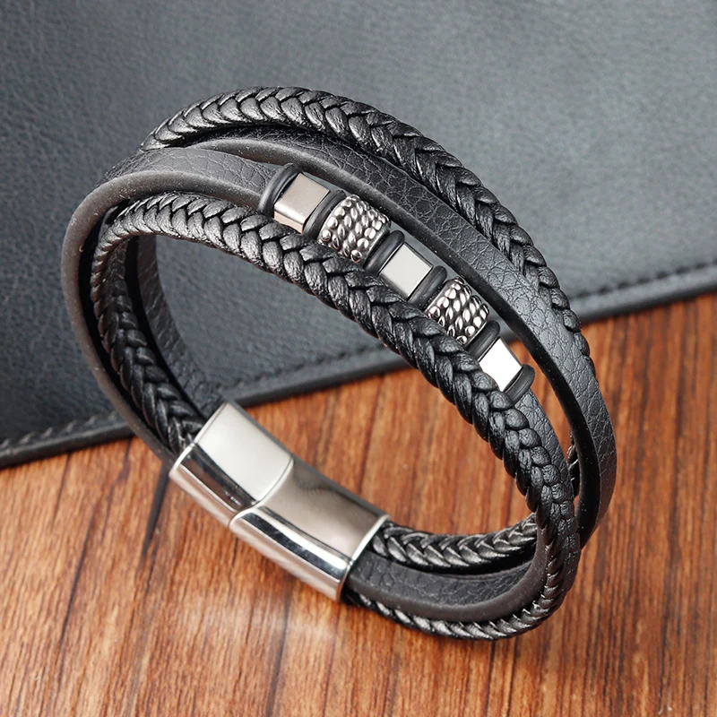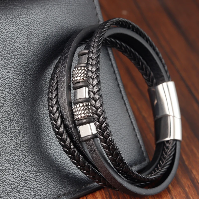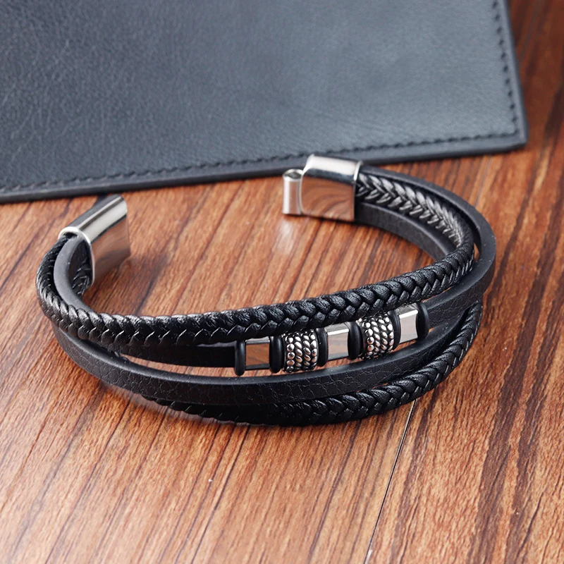 Men braided leather bracelet