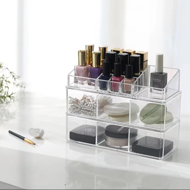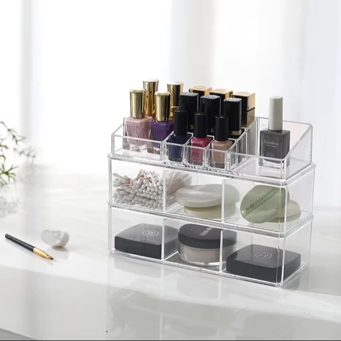 Plastic Desk Stackable Jewelry Storage Cosmetic Acrylic Box Drawer Makeup Organizer