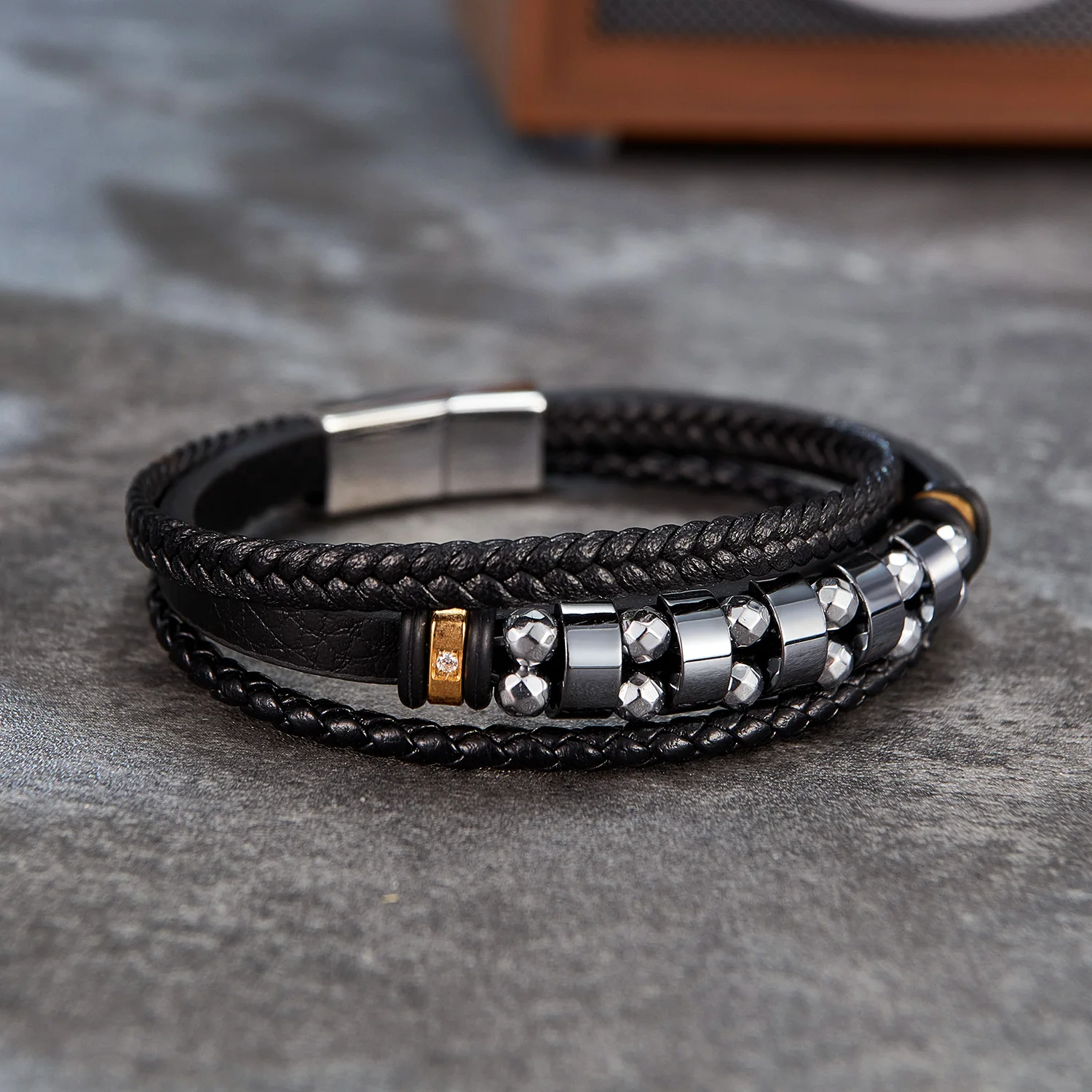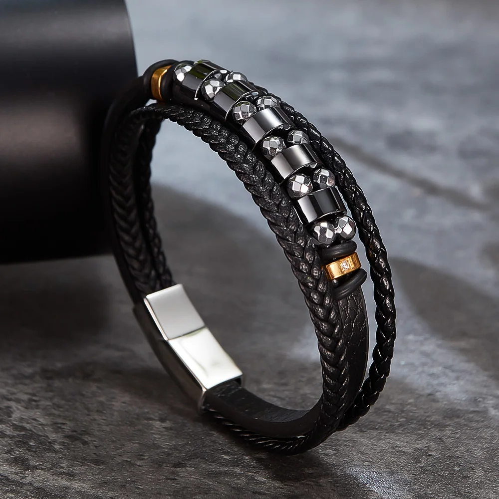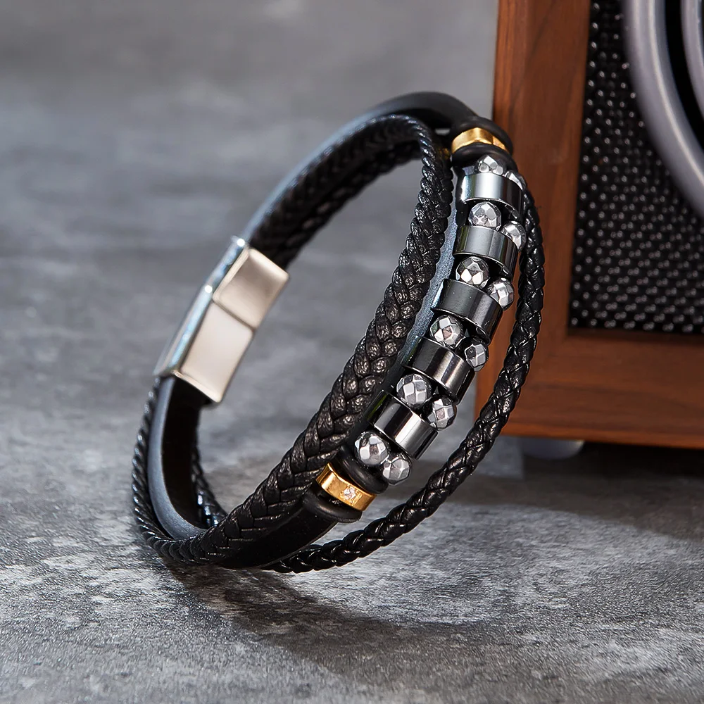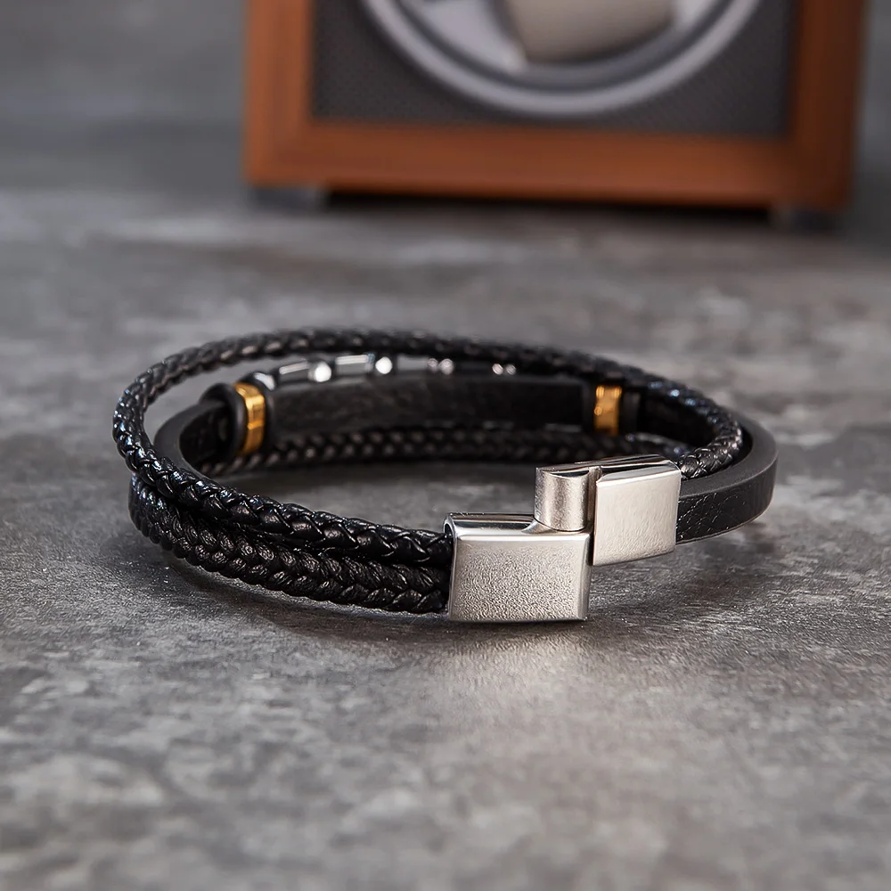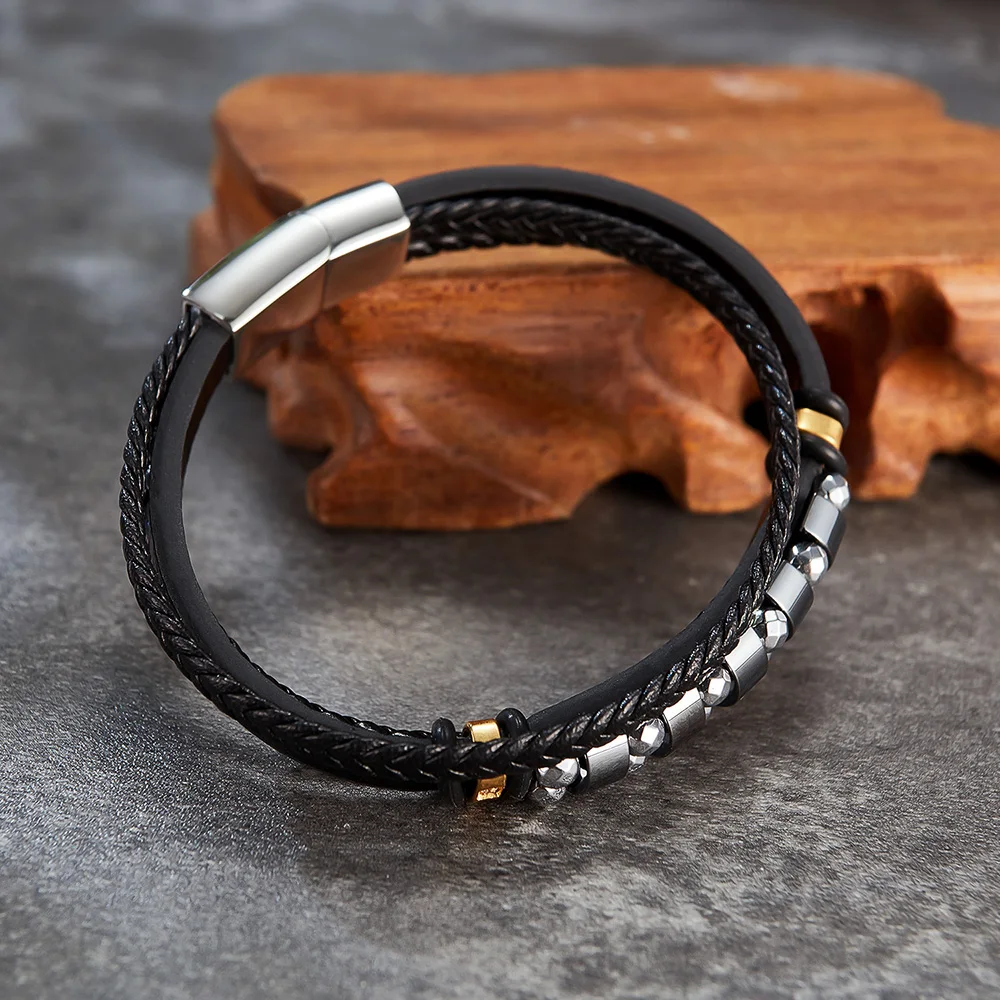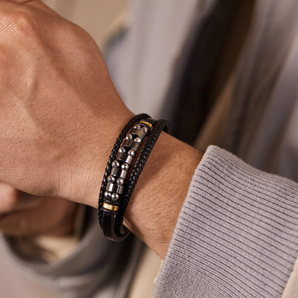 This bracelet is with black genuine leather that looks luxury. You could custom other color of leather or clasp. Its the best gift for your lover, friends and family.