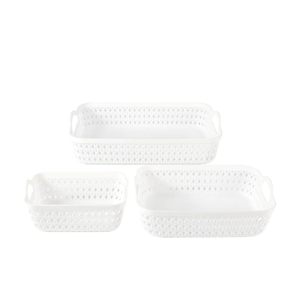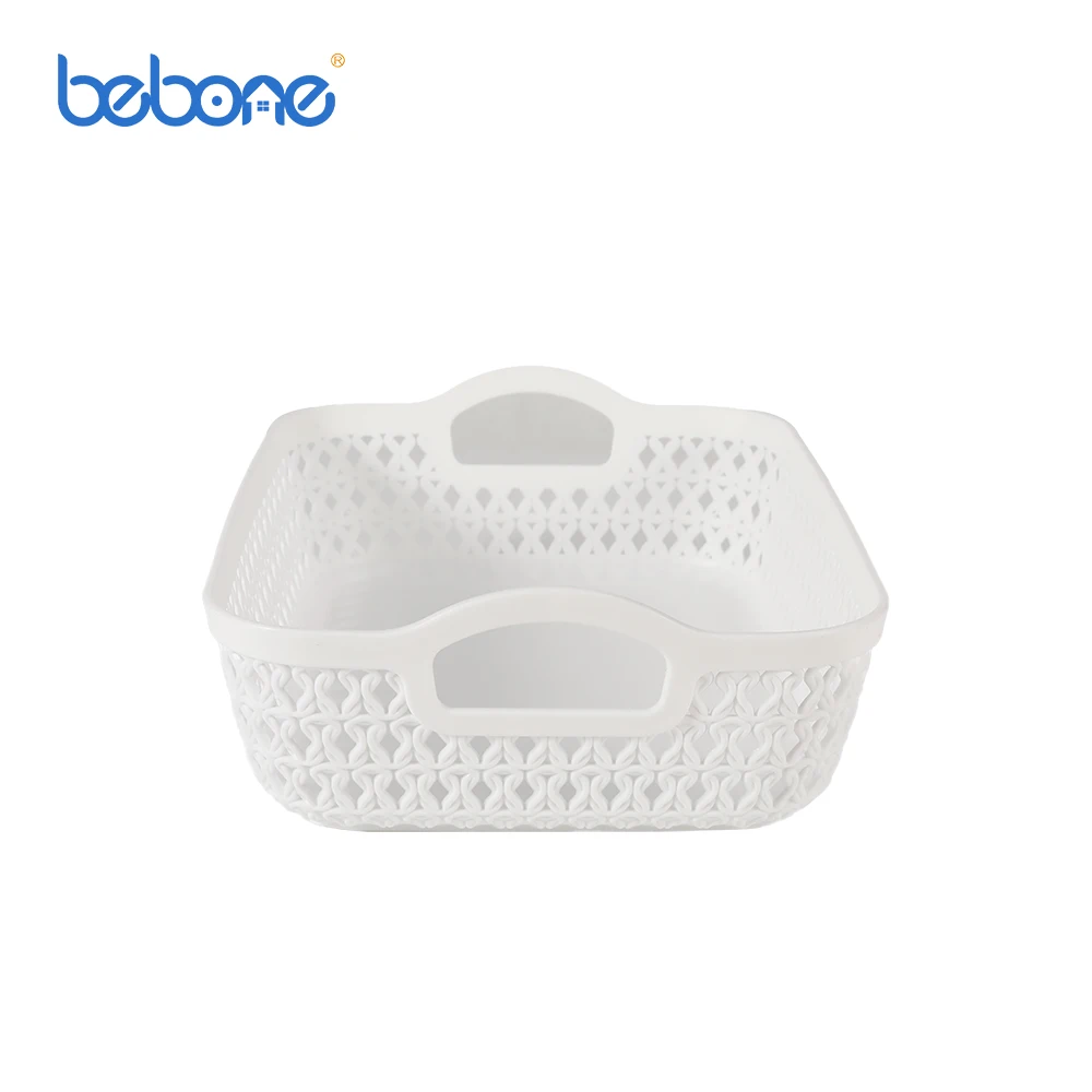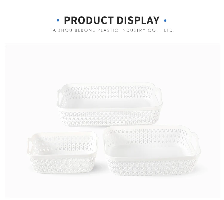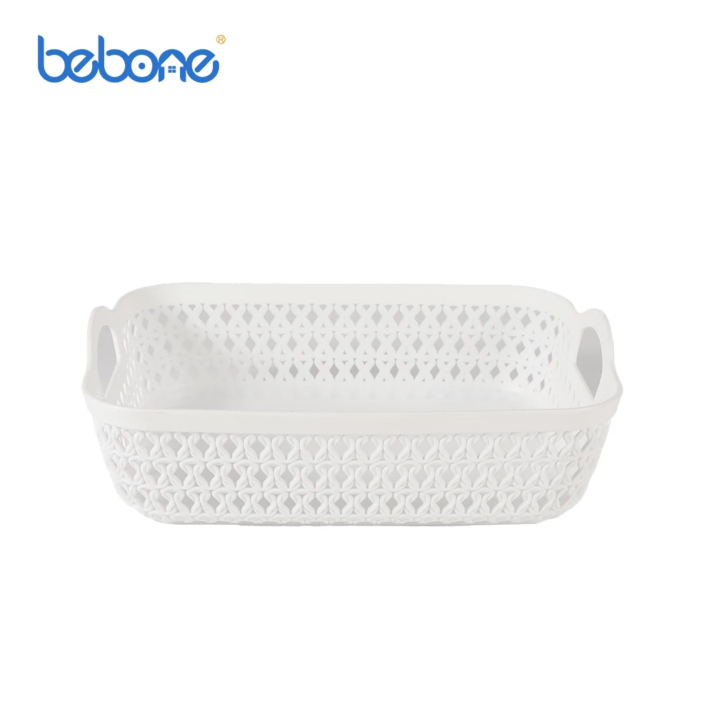 Bedroom desktop makeup collection organizer white rattan plastic storage basket