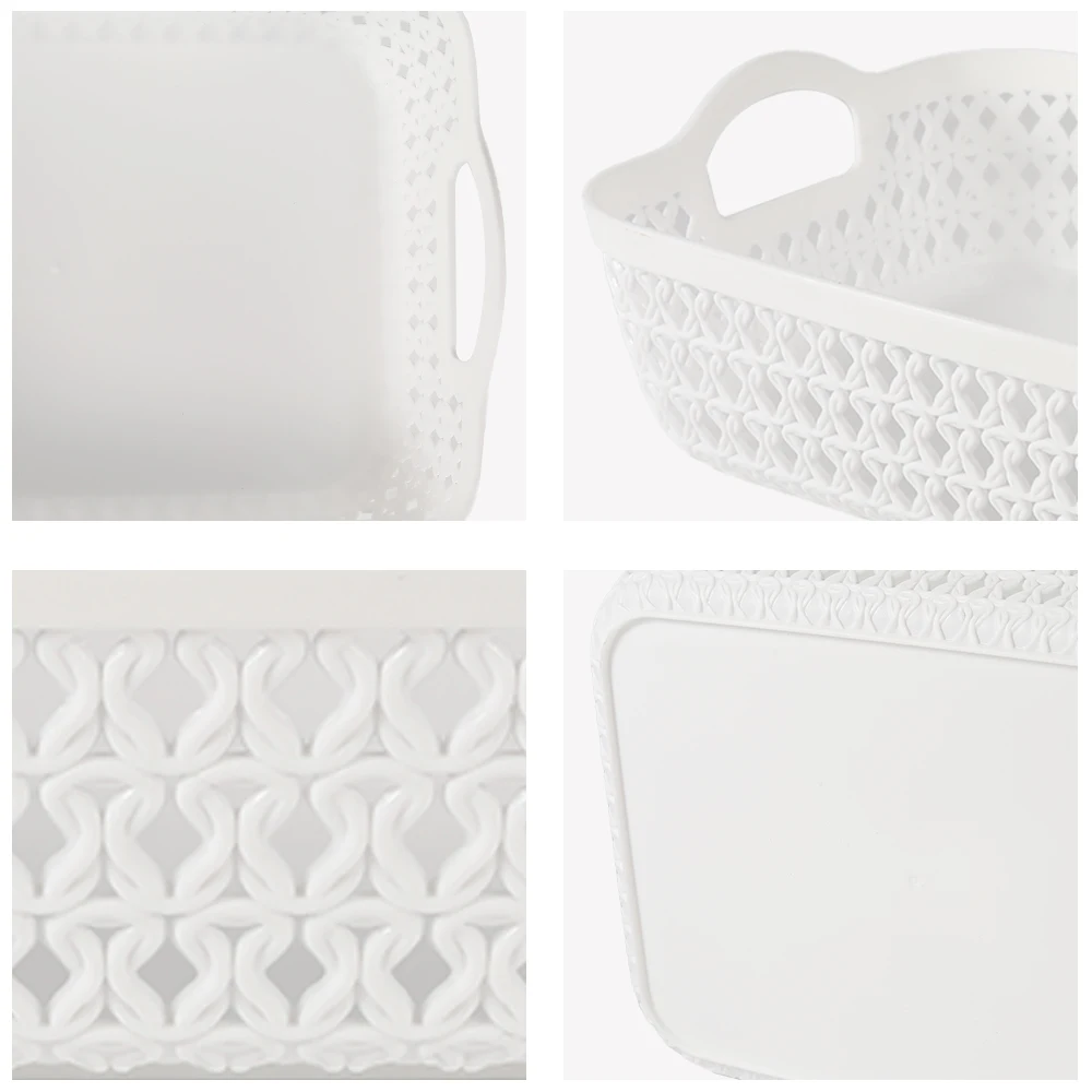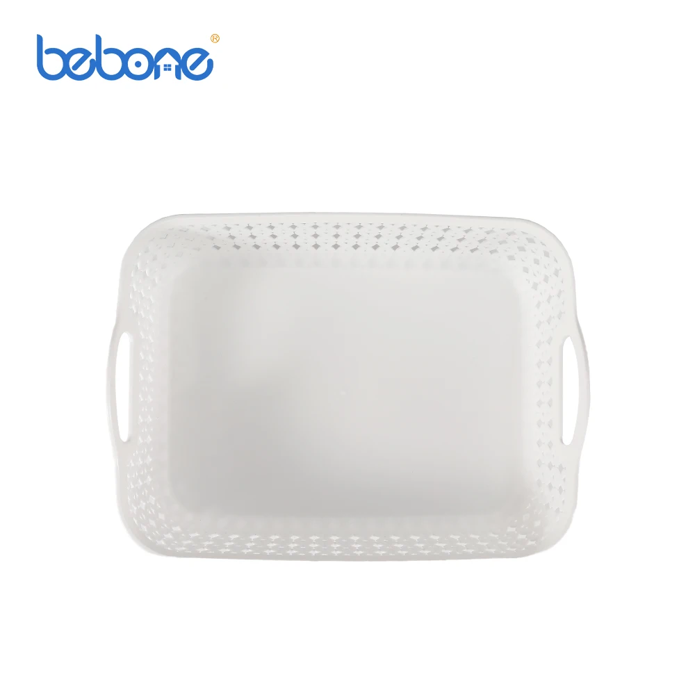 White Square plastic rattan wicker round toy vegetable waterproof storage basket