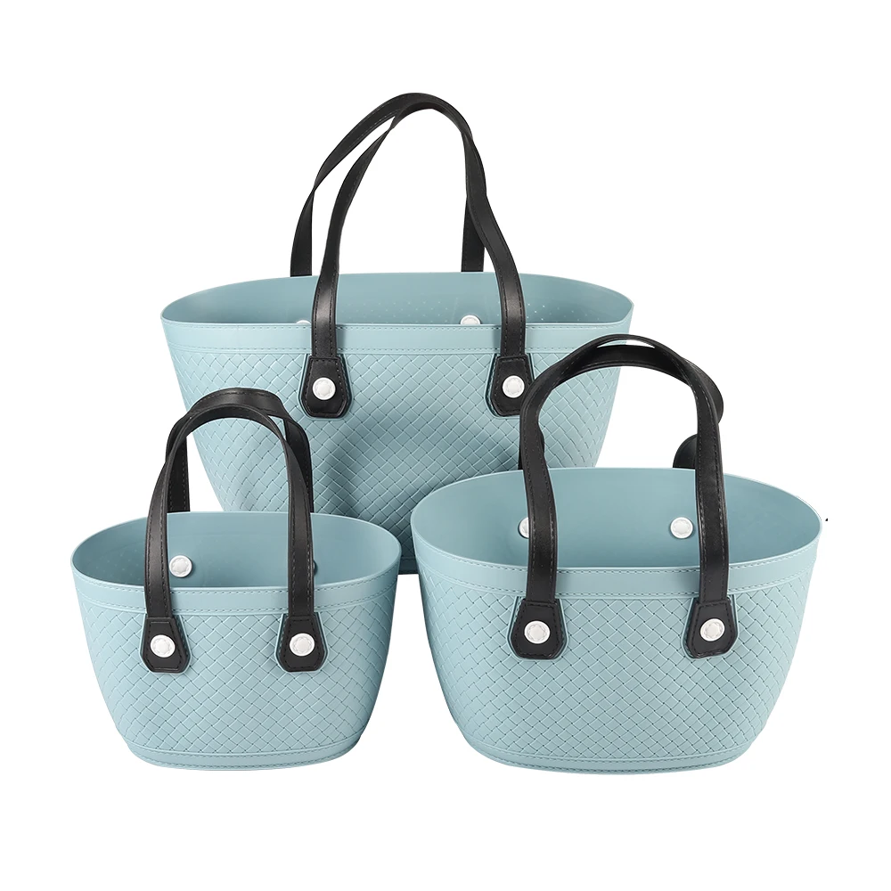 Round plastic rattan wicker food vegetable waterproof storage basket with handle