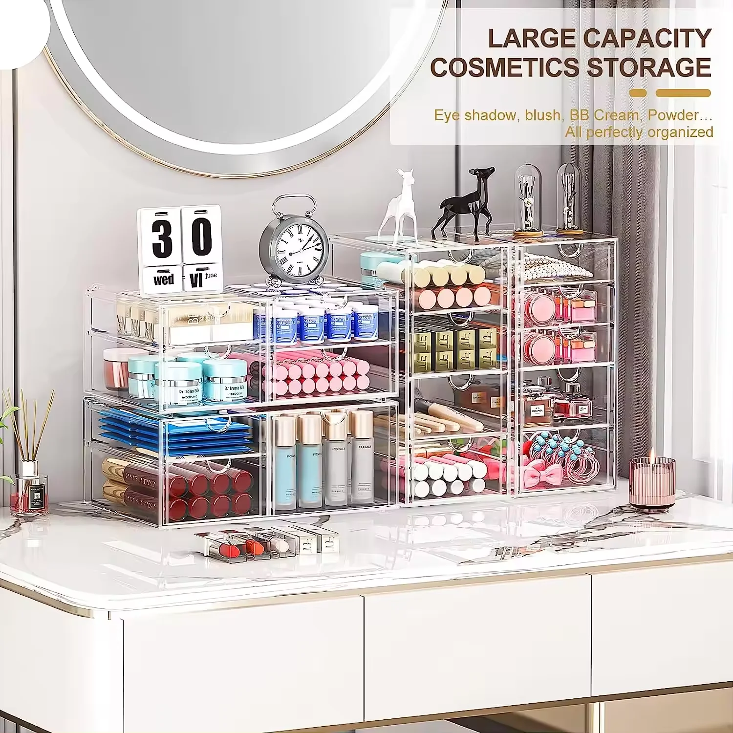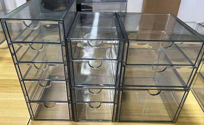 PET Modern 12-drawers Rectangle Transparent Plastic Eco-Friendly Desk Organizer Office Stationery Storage