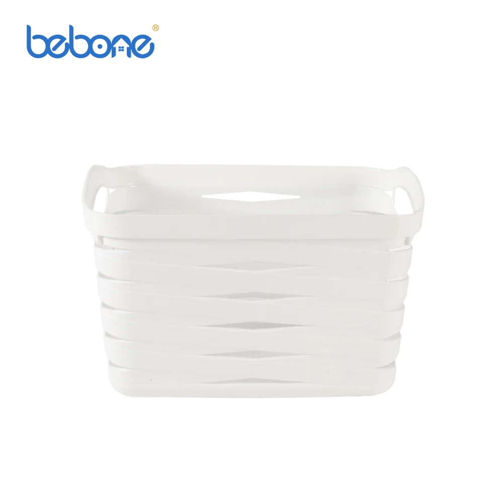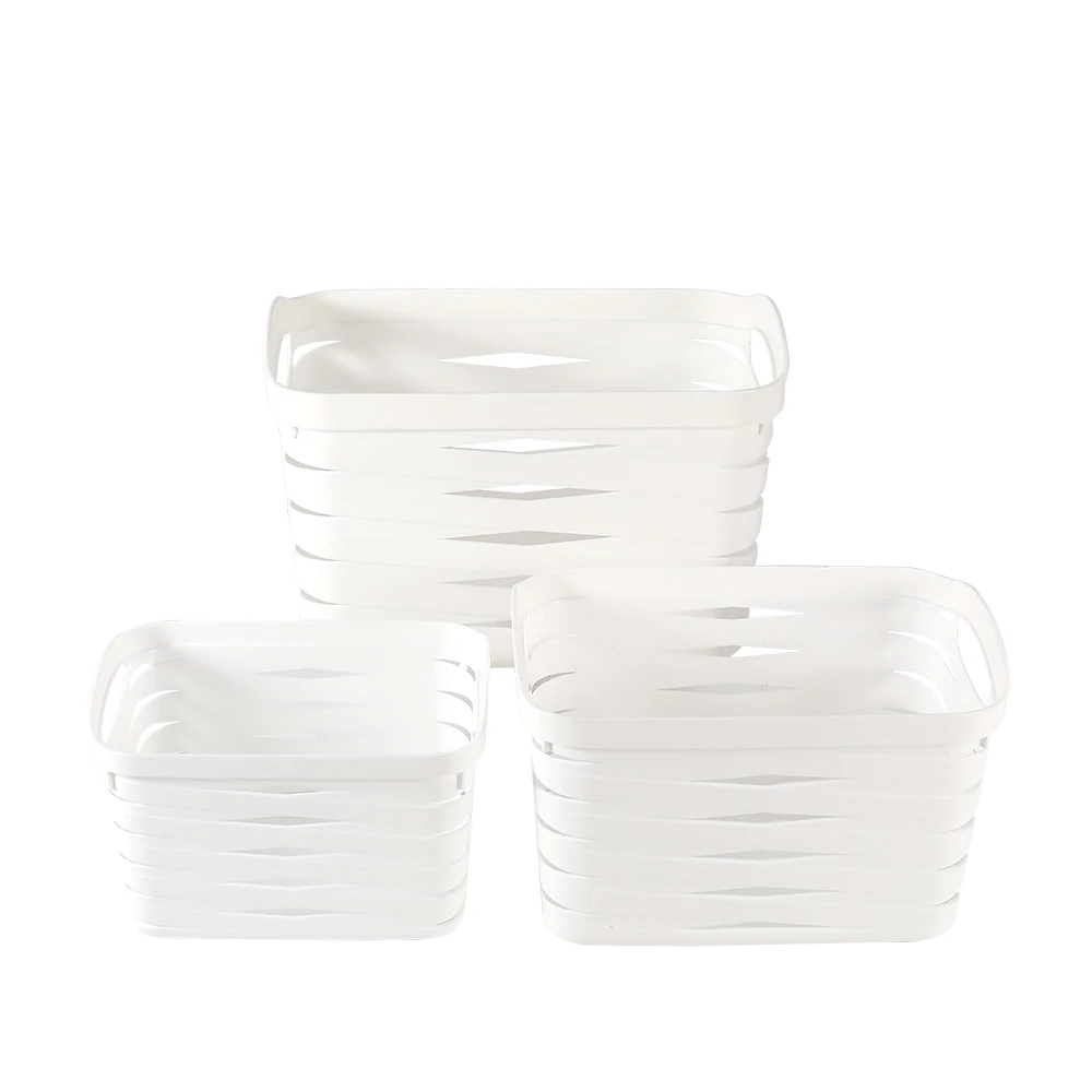 Household multi sizes stackable rectangular plastic striped storage baskets