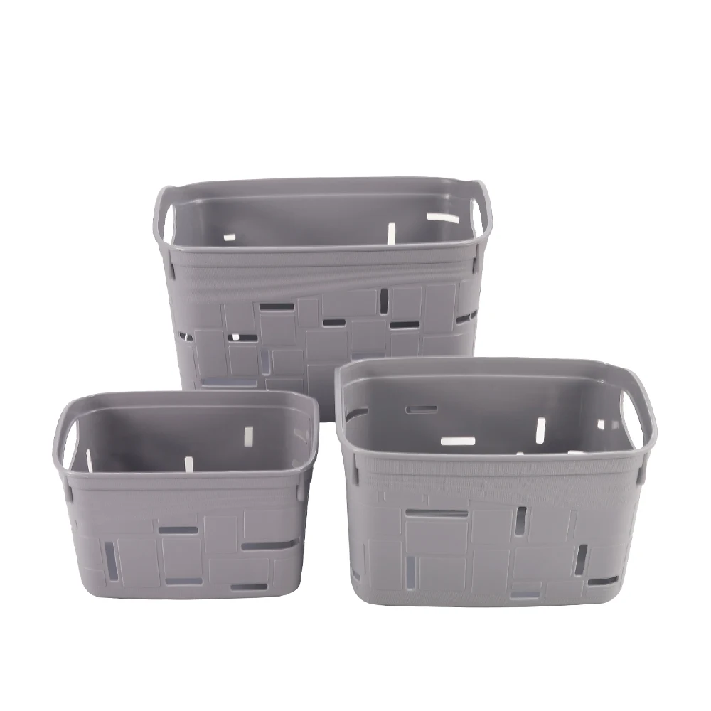Grey color durable portable leather-like surface plastic storage basket