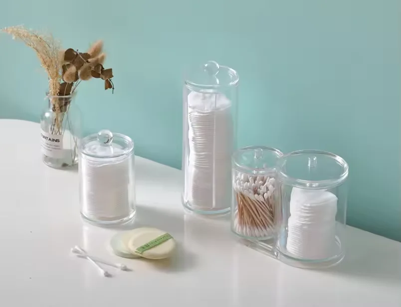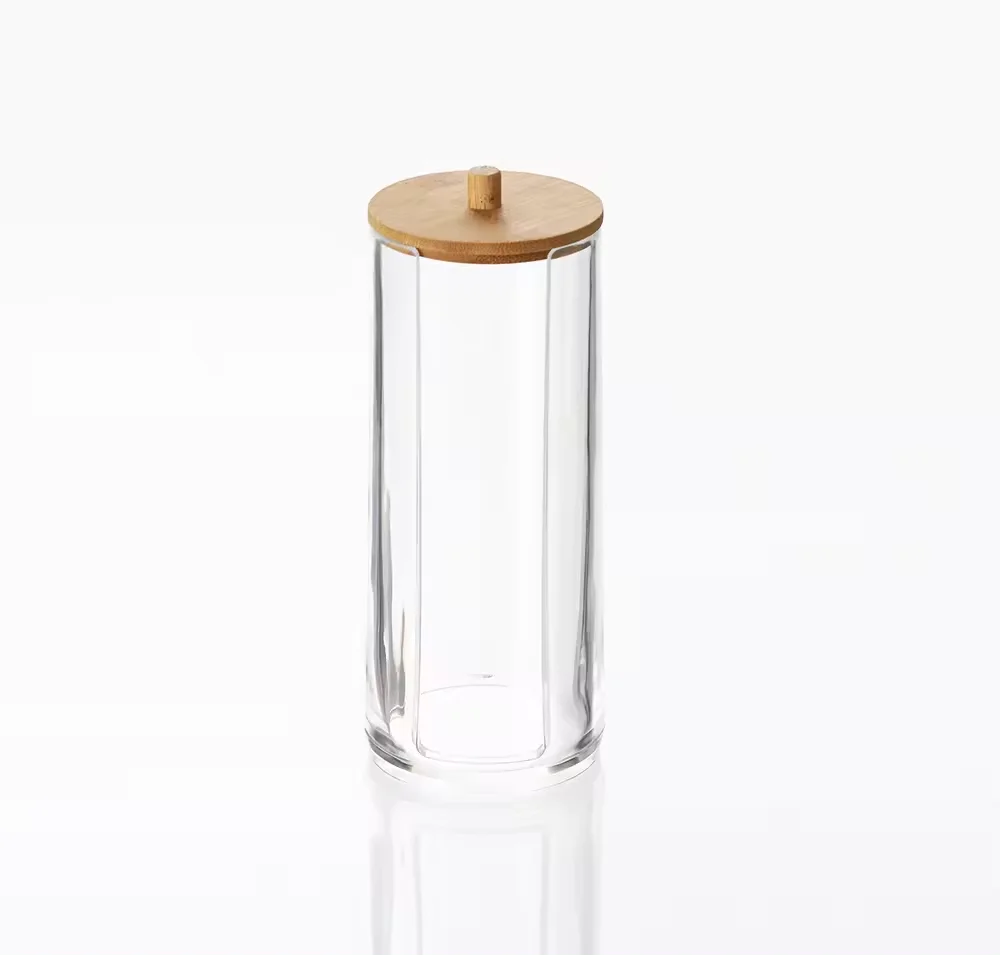 Make up organizer Acrylic Cosmetic Makeup Cotton Pad Organizer Swabs Qtip Container with Bamboo Lid