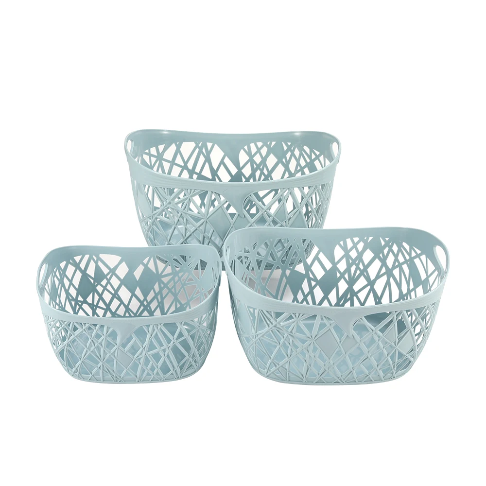 High quality durable household portable kitchen stackable desktop plastic storage basket with handles