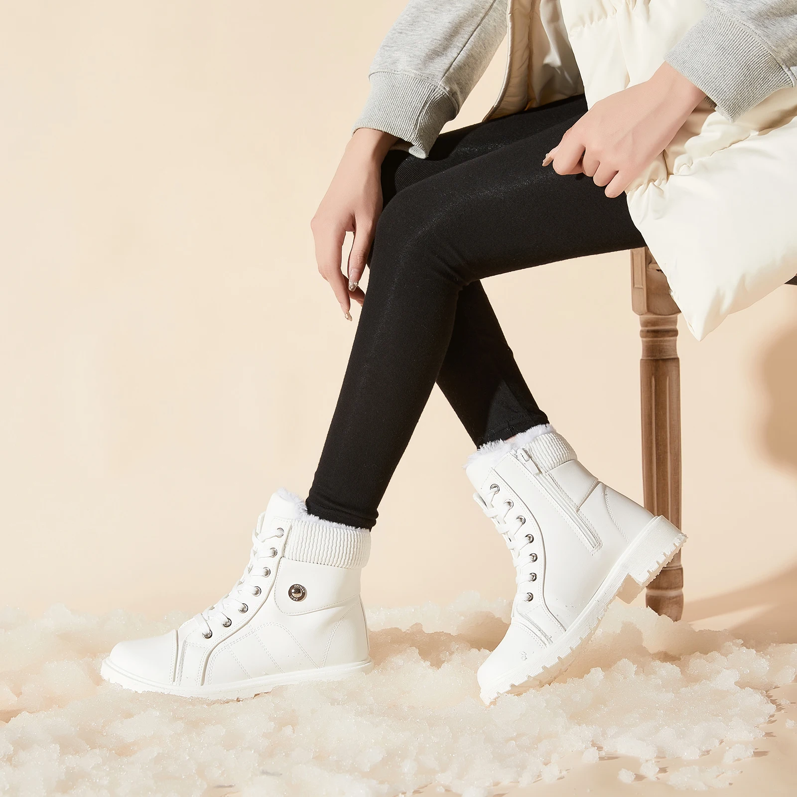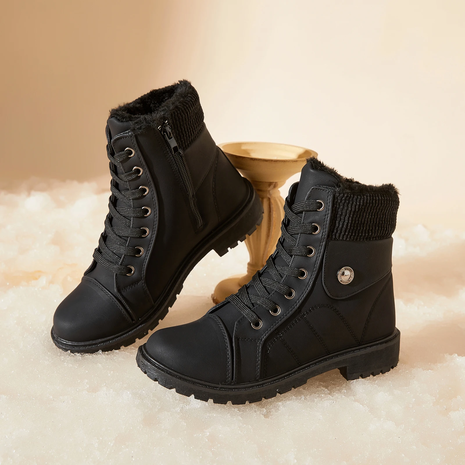 NR Wenzhou Factory Direct Customized Women's Winter Warm Snow Boots Western Style Toe Lace-Up Boots