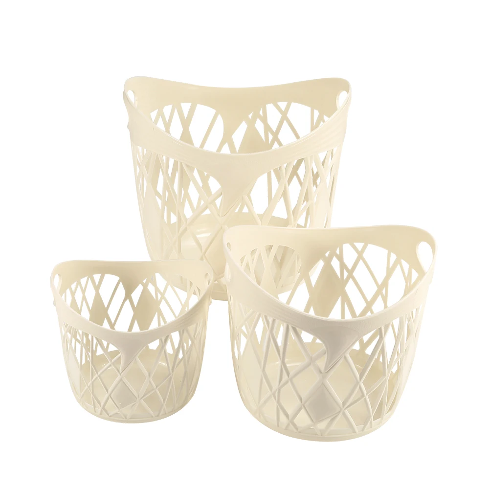 Customized large capacity rattan plait plastic storage basket open side handle design for convenient sundries storage