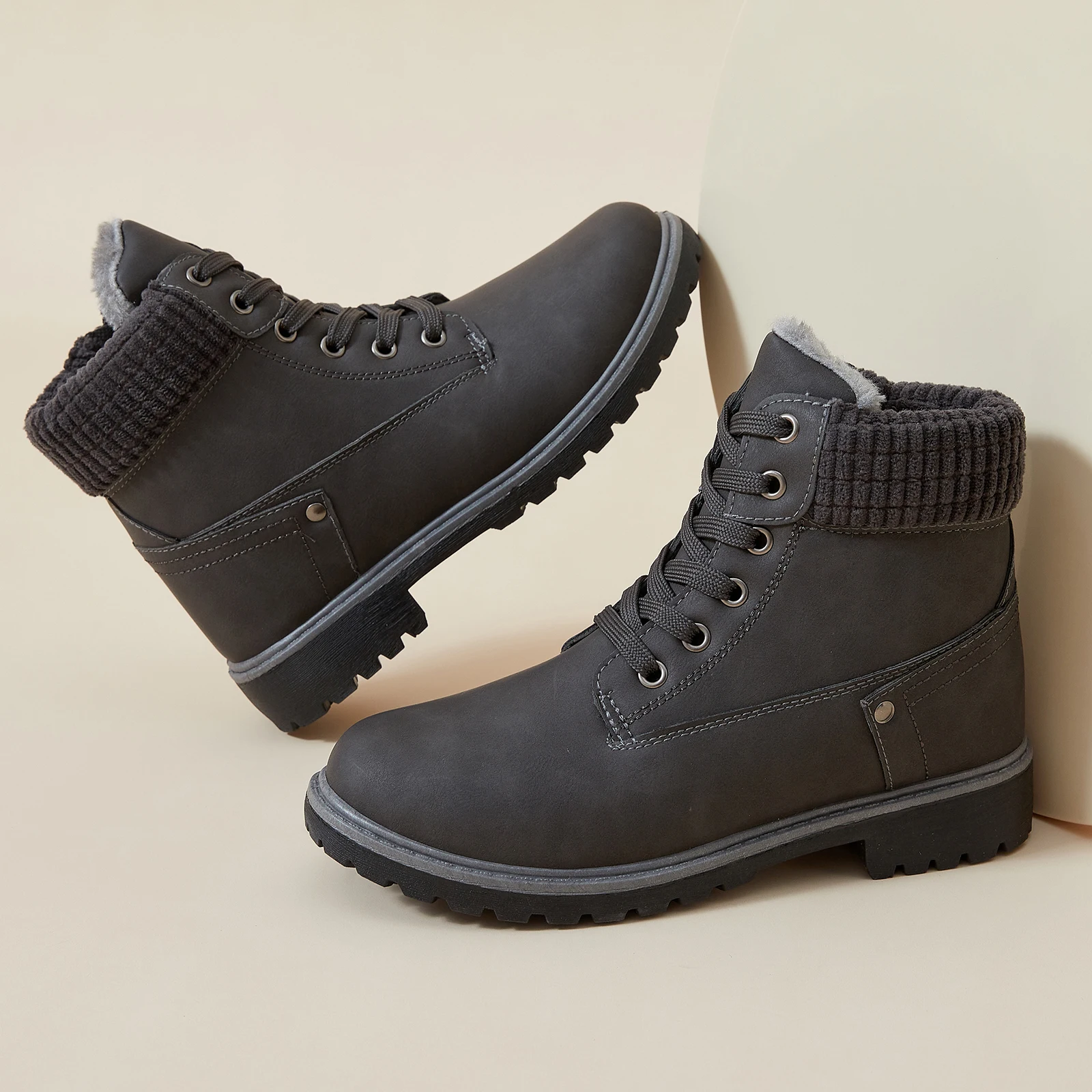 2024 Women's S PU Ankle Boots Lace-Up Casual Short Boot for Winter High Quality