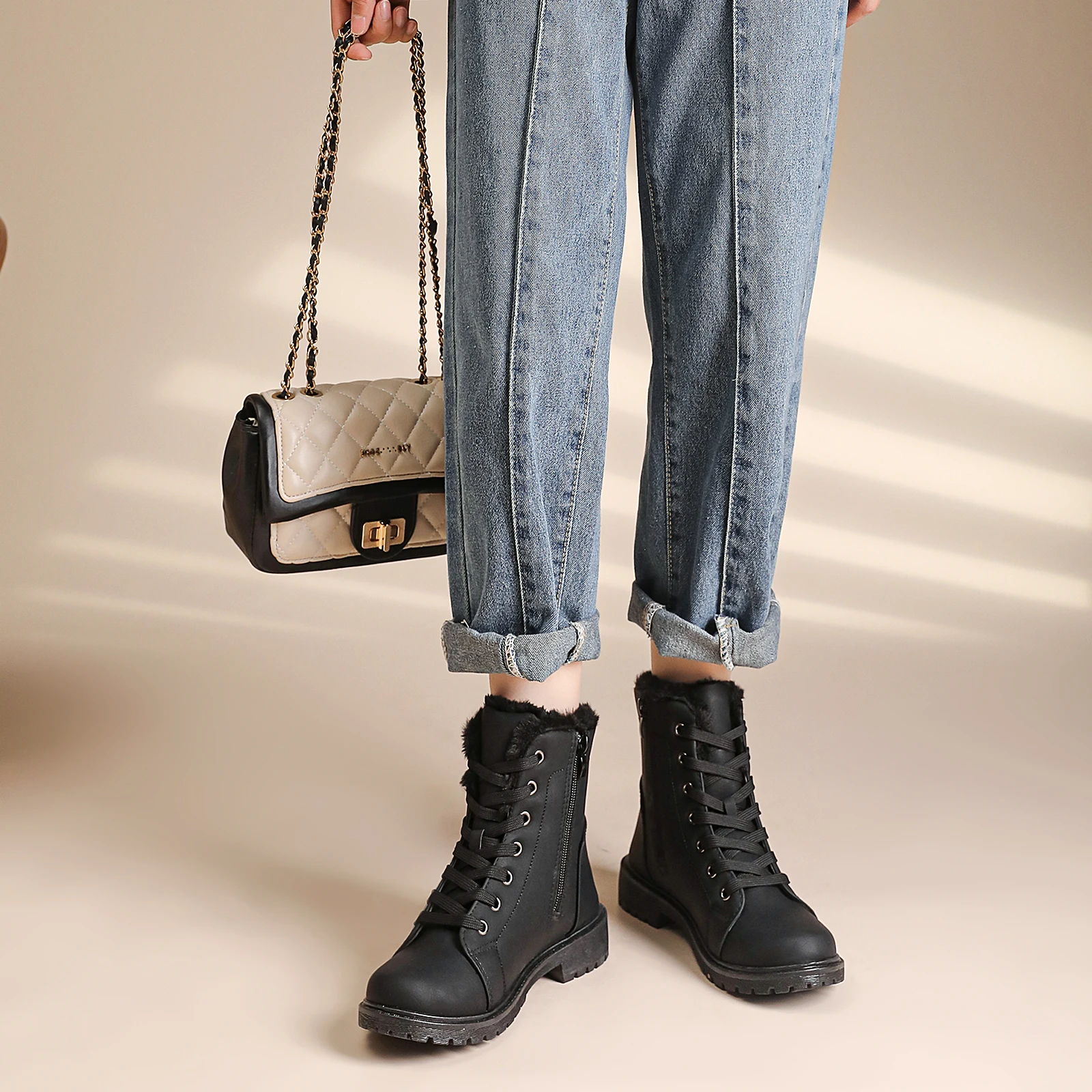 Wenzhou Factory Custom Logo Women's Classic Warm Ankle Boots for Winter round Toe Thermal Anti-Slip Features Autumn