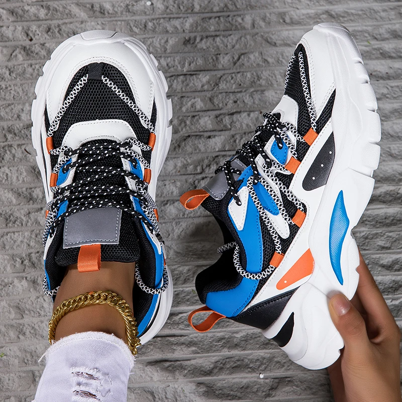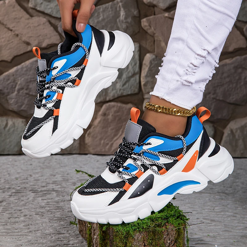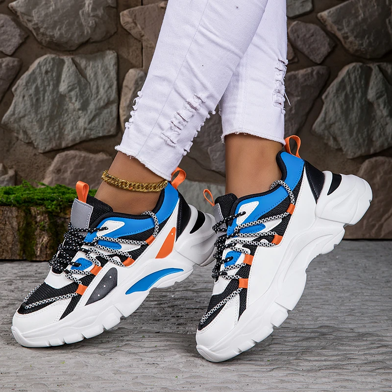 Hot Sale zapatillas PU Thick Sole Shoes Flat Non-Slip Platform Running Shoes Casual Chunky Sneakers for Outdoor Ladies