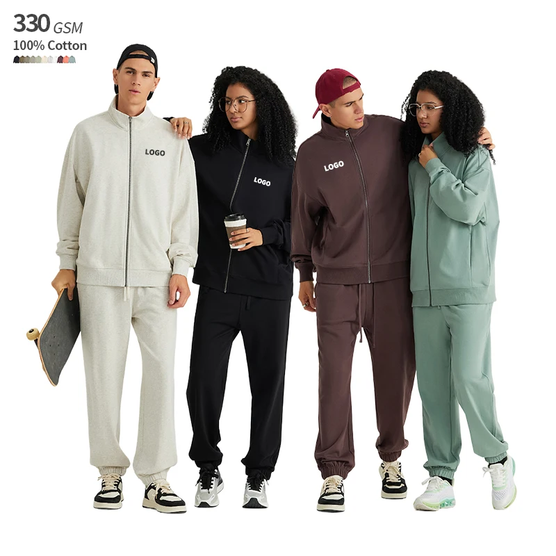 Stand Collar Us Size Custom Blank 330 GSM Jogging Tracksuit 100% Cotton French Terry Zip Up Streetwear Sweatsuits Unisex Sets