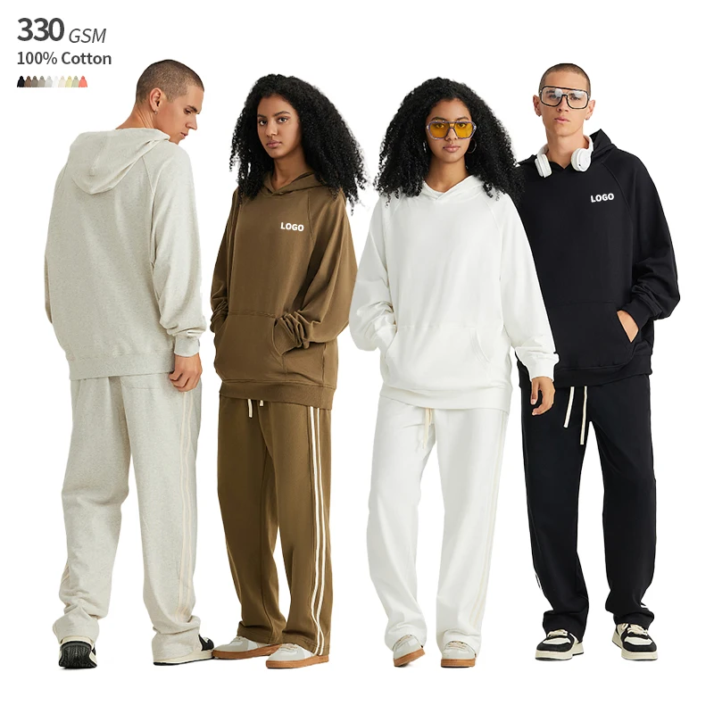 Without Rope Us Size High Quality 330 GSM 100% Cotton Men's Sweatsuit Men French Terry Wholesale Tracksuit Jogger Set