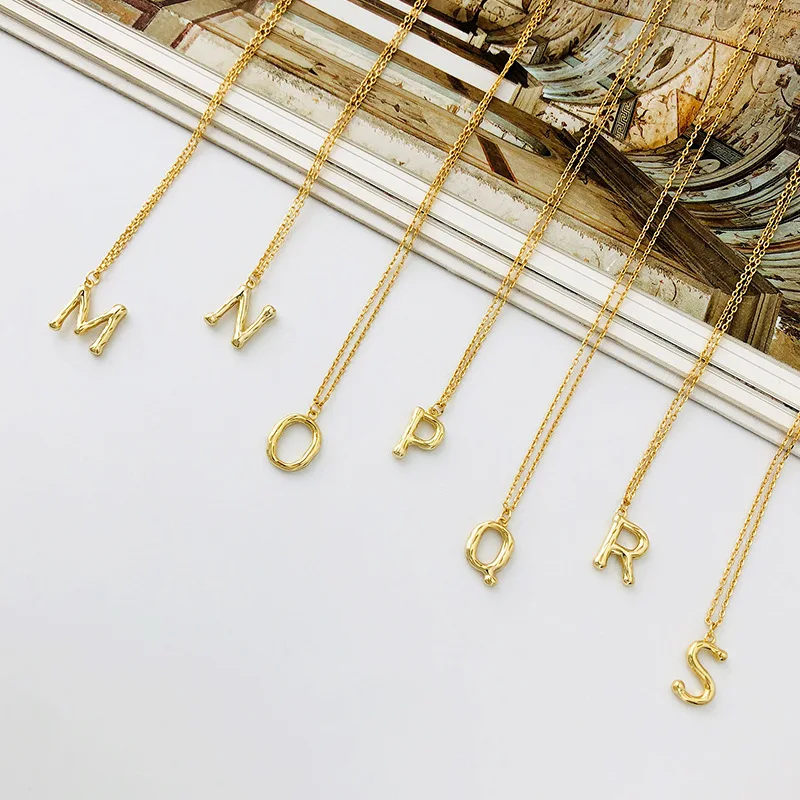 Gold plated 925 sterling silver letter pendant necklace chain personalized name initial letter necklace