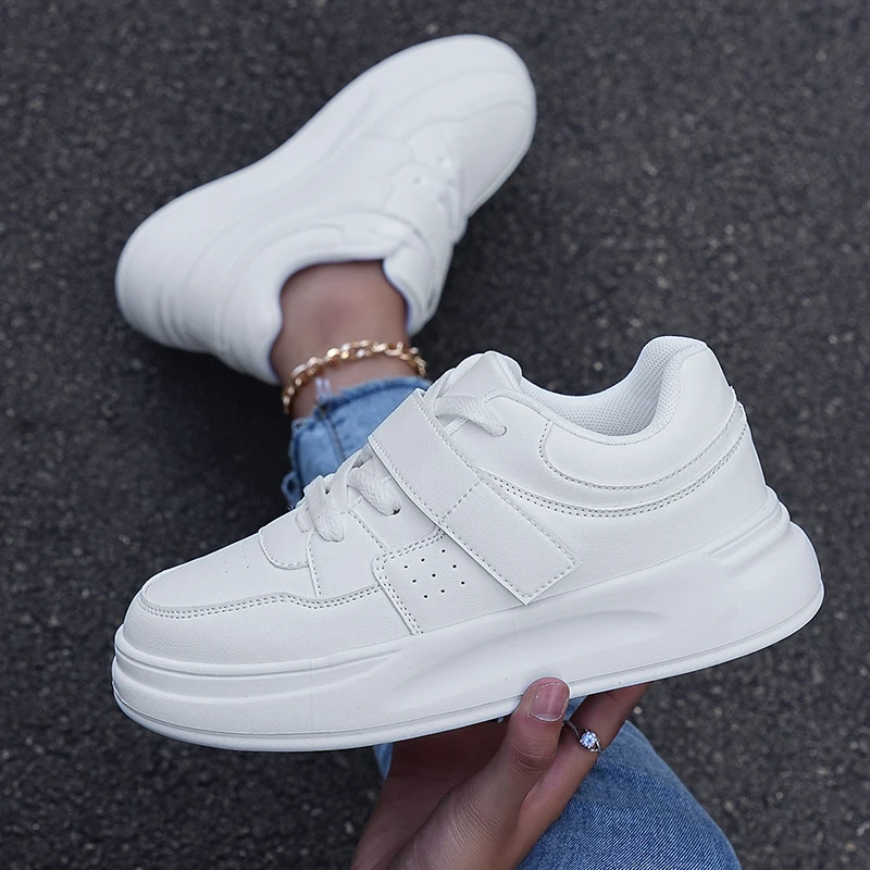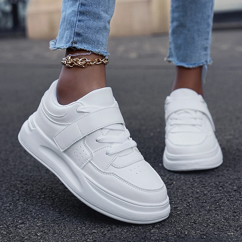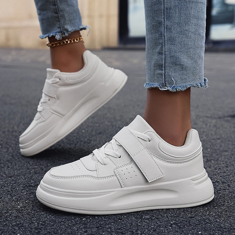 2024 New Style Women Tennis Running Shoes Comfortable Lace up Casual Shoes Fashion White PU Leather Sneakers Walking Shoes