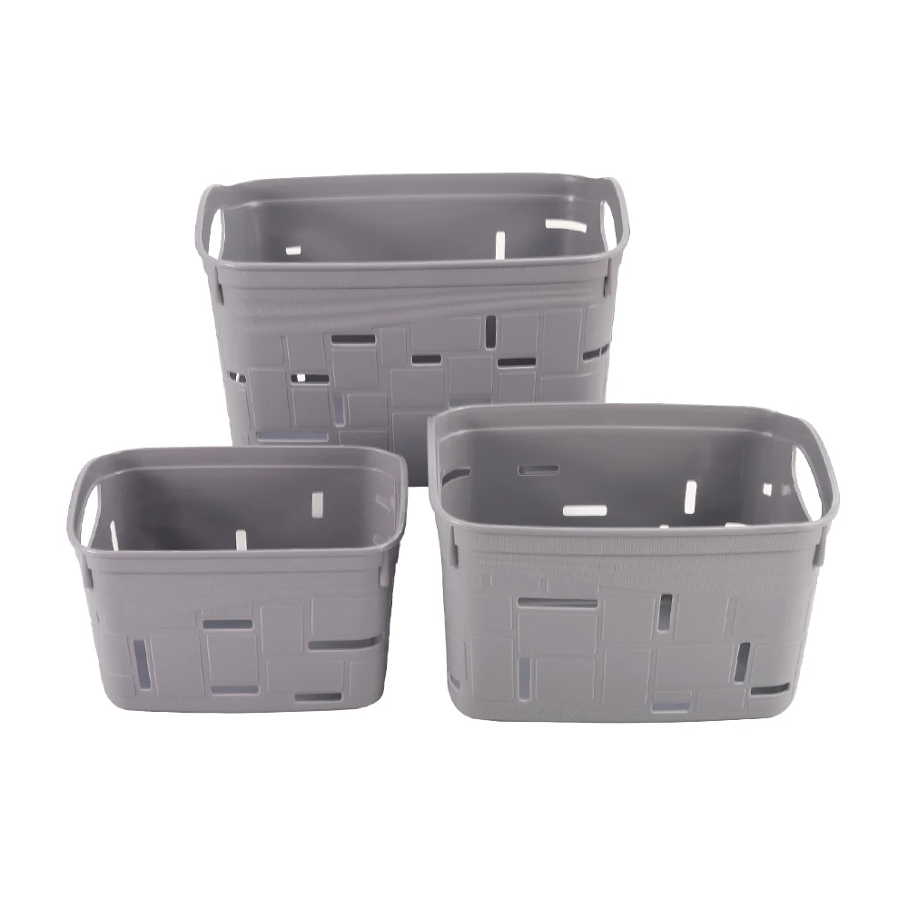 Portable small plastic picnic food organizer storage basket with handle holes