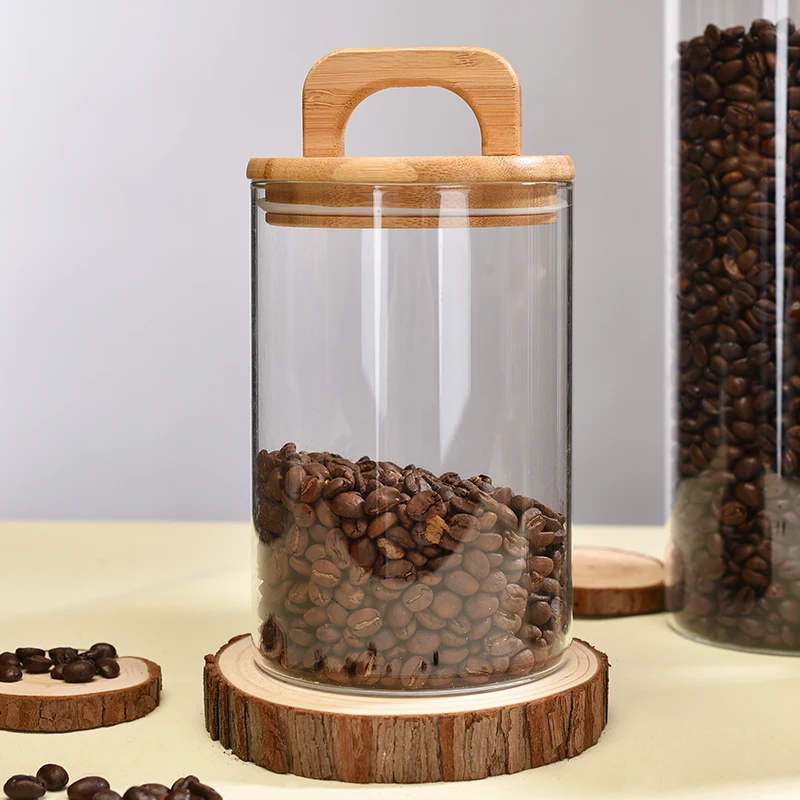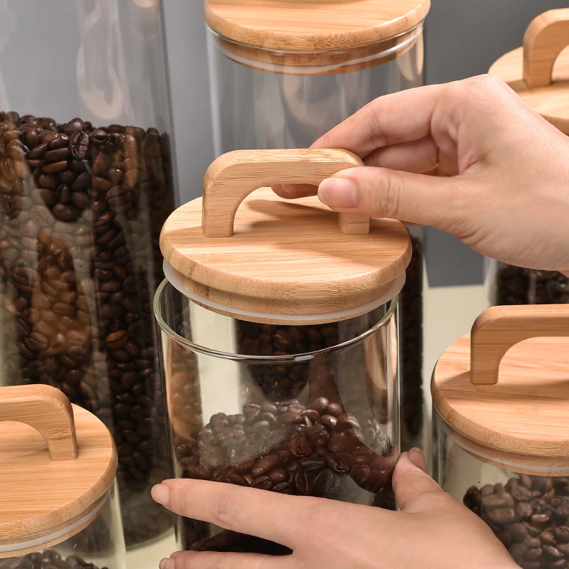 High Borosilicate Glass Jars with Airtight Bamboo Lids Clear Decorative Food Canister Storage Container for Home Kitchen Pantry