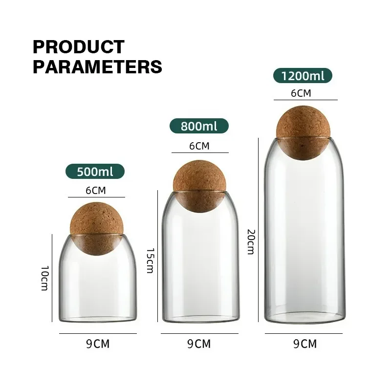 High Quality Food Storage Lightweight and Sturdy High Borosilicate Glass Kitchen Sets of Food Spice Storage Jar with Cork Lid