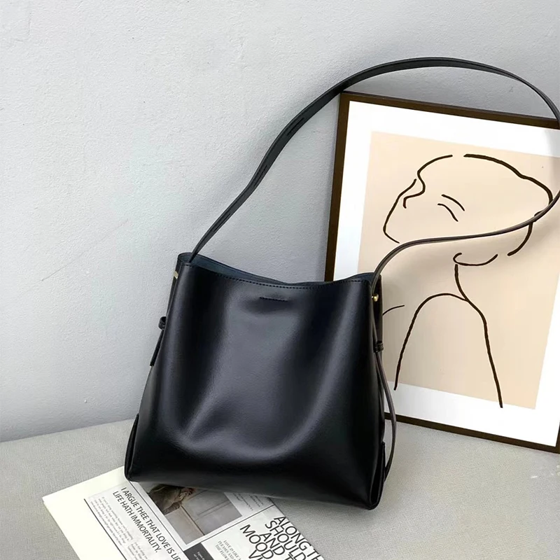 Features | Fashion women genuine leather bucket bag |