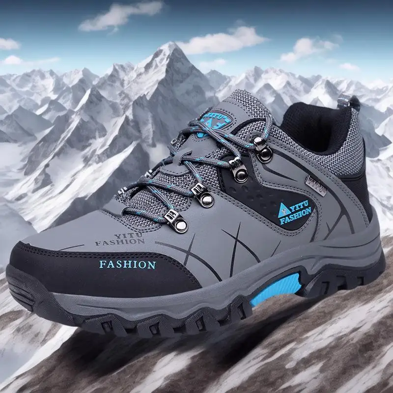 Men's Mountaineering shoes cotton outdoor waterproof trekking low top leather plus warm large size outdoor hiking trail shoes