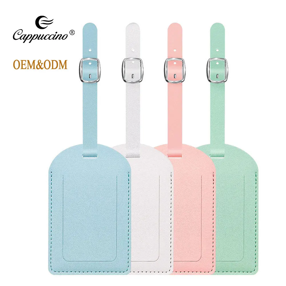Simple Logo Solid Color Smooth Soft Pu Leather Luggage Tag Privacy Protection Adjustable Luggage Tag