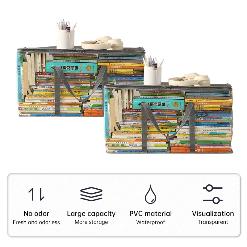 Large Capacity PVC Transparent Storage Bags Clothes Toys Storage Books Bag with Zipper