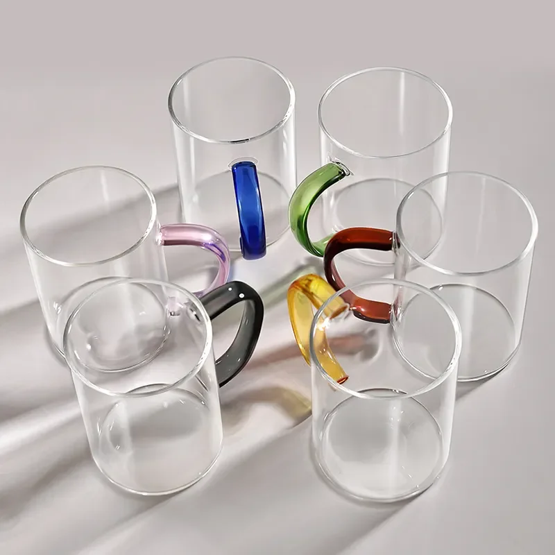 Factory New style heat resistant water glass coffee milk cup tea cup high borosilicate Glass cup mug with colored handle