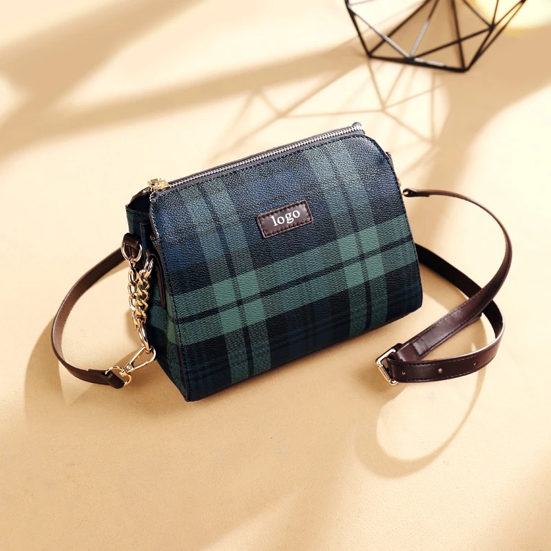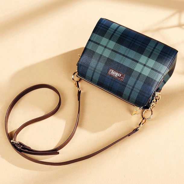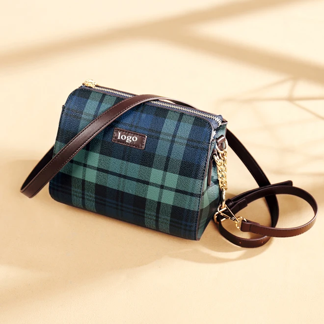 Custom logo simple handbag ladies luxury plaid bags for females shoulder bag women's tartan bag