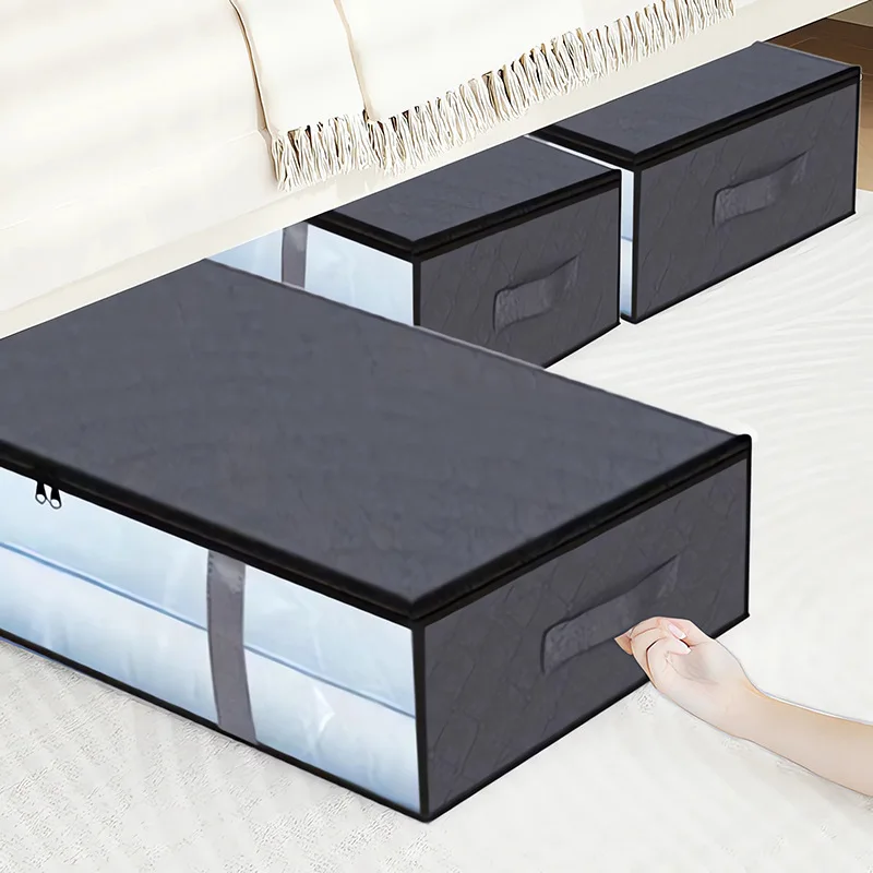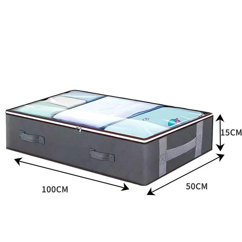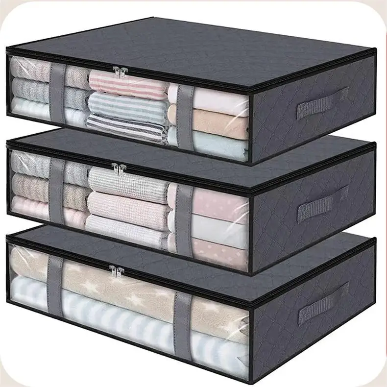 Thick Fabric Foldable Under Bed Storage Box Organizer Containers Underbed Clothes Storage Bags With Clear Window