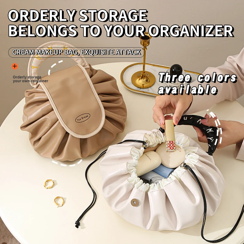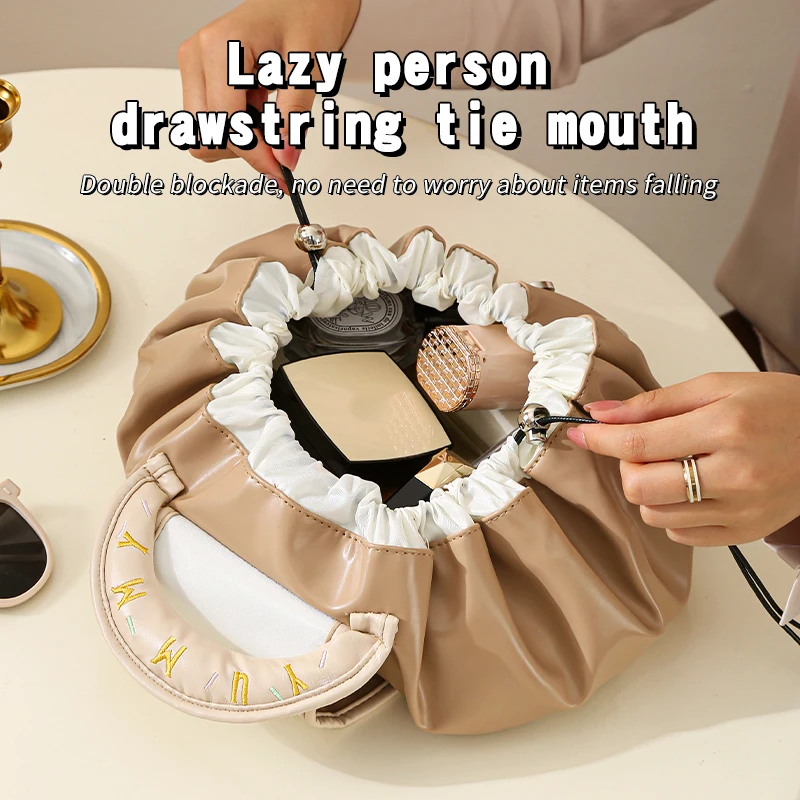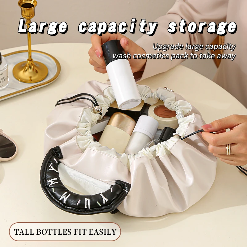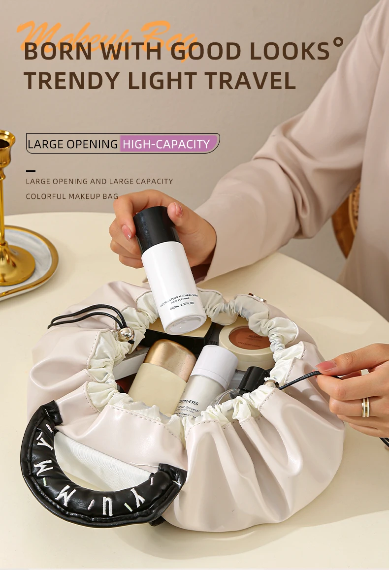 Wholesale Ladies Travel Pouch Pu Leather Waterproof Makeup Bag Drawstring Cosmetic Bags