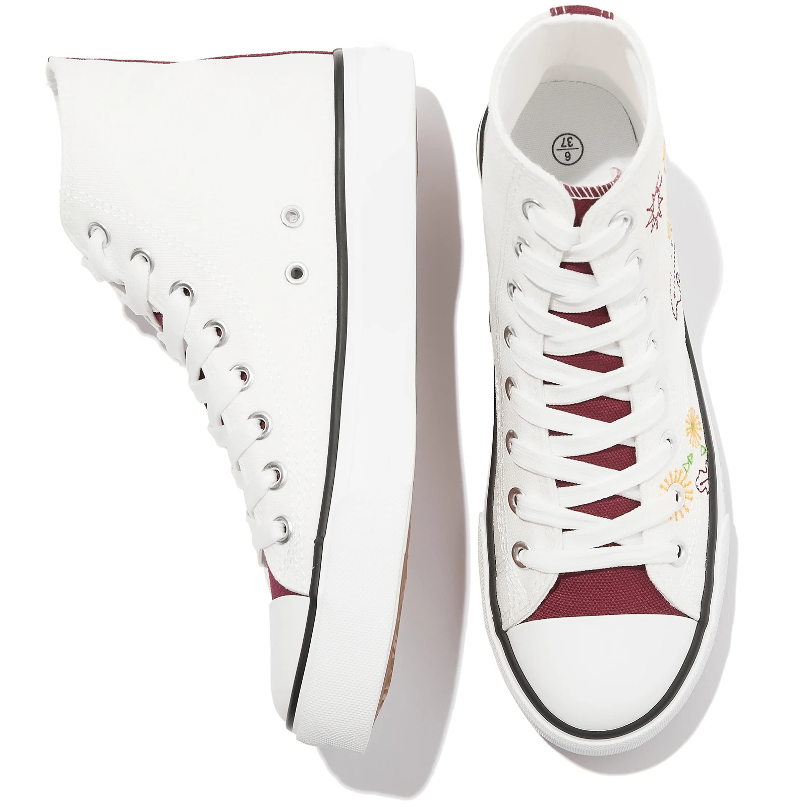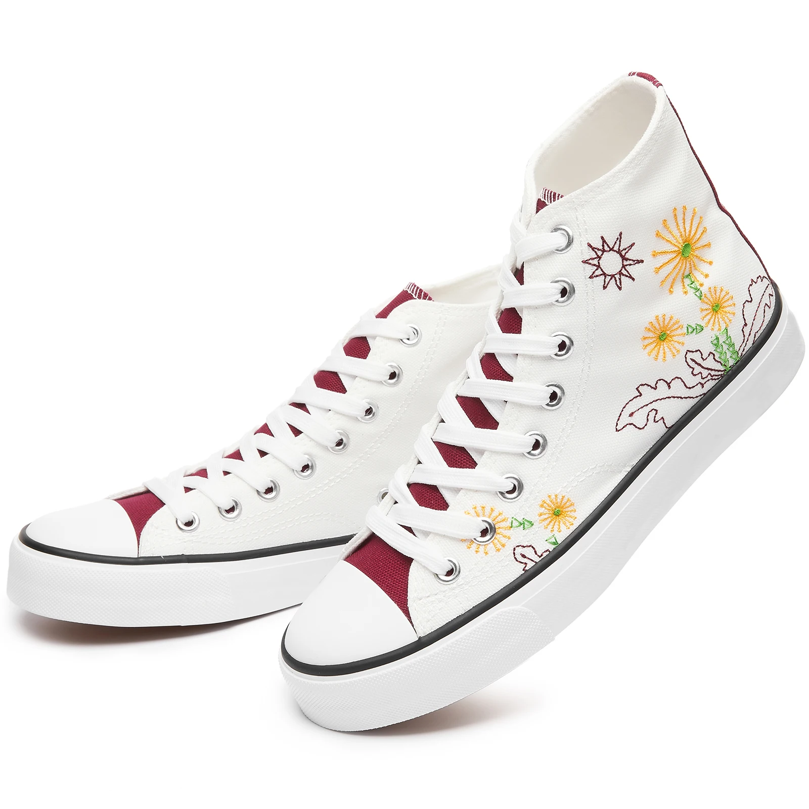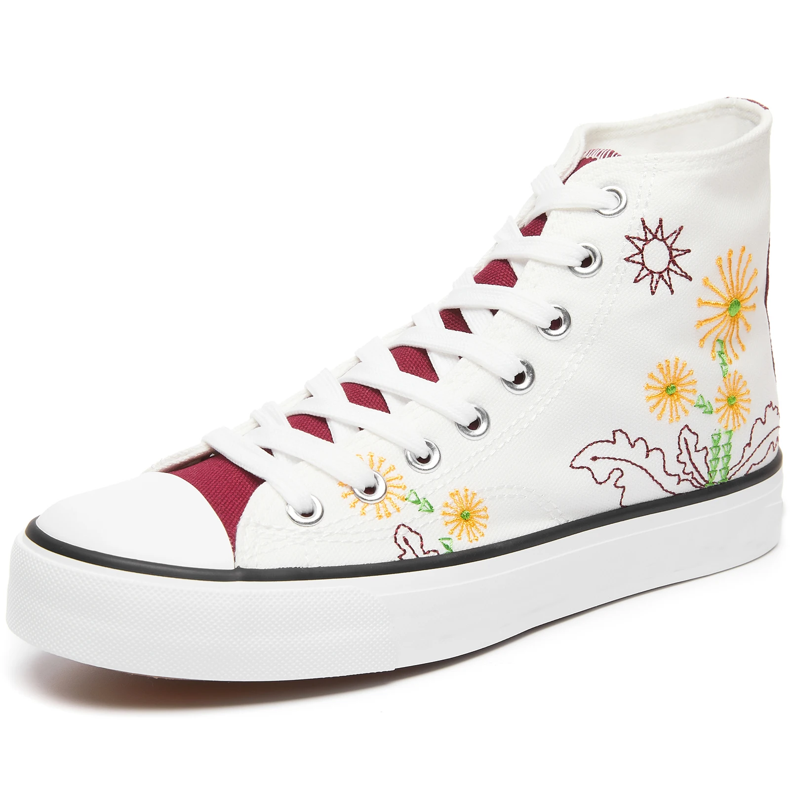 High Top White Flower Pattern Canvas Casual Shoes Durable Non Slip Custom Walking Canvas Shoes for All Season Wholesale