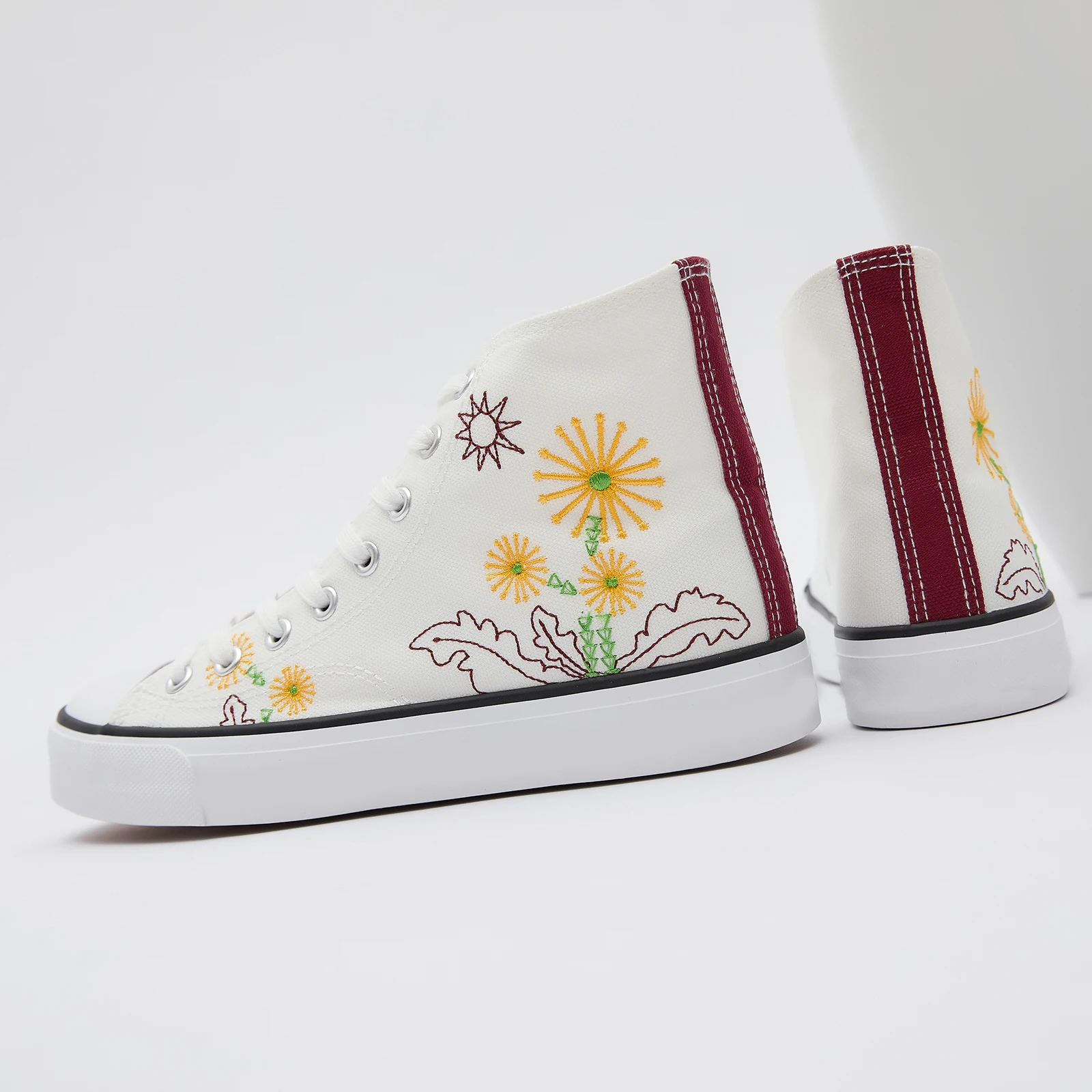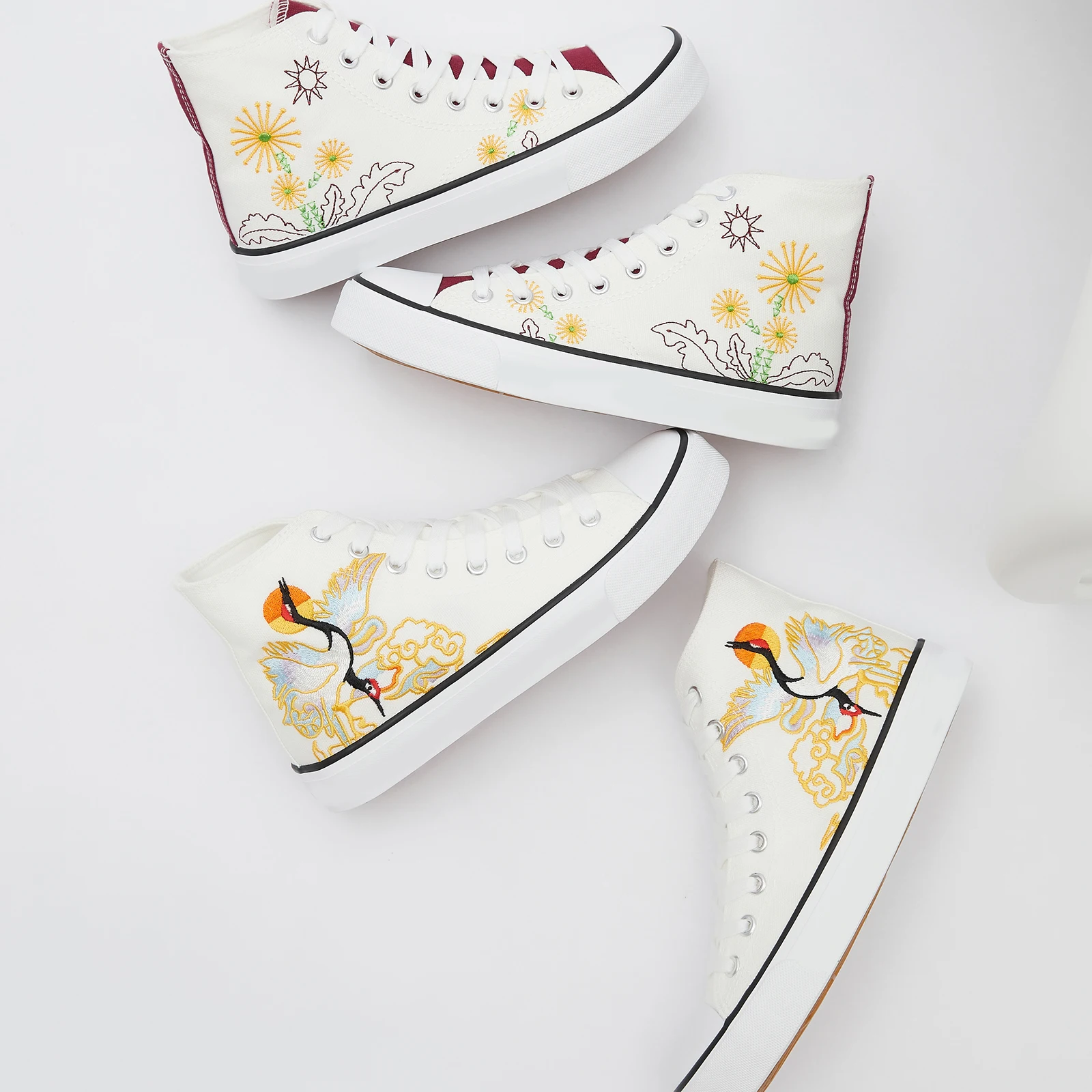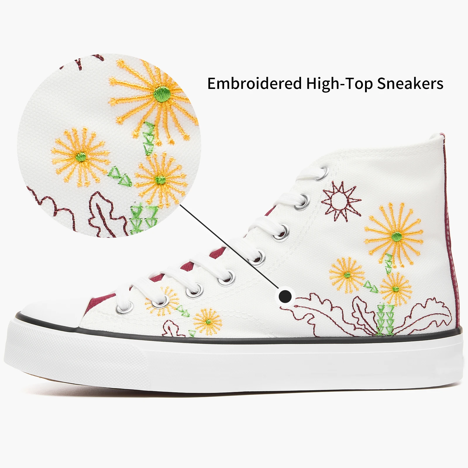 High Top White Flower Pattern Canvas Casual Shoes Durable Non Slip Custom Walking Canvas Shoes for All Season Wholesale