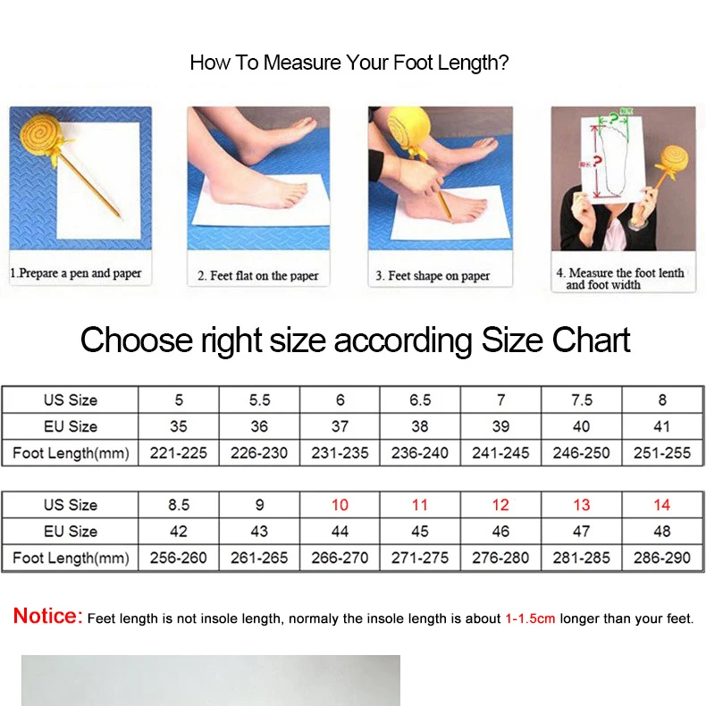 3.Please choose size according to foot length, (Don't choose size according to your country usual size !!!) -
