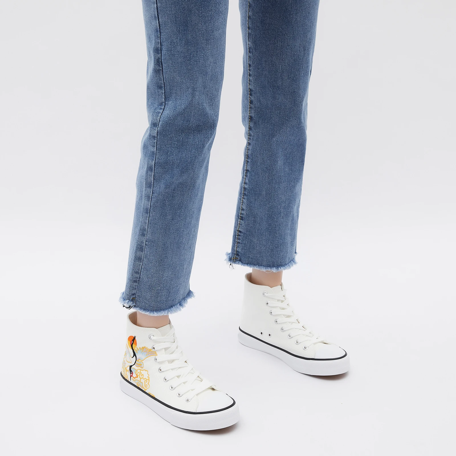 NR factory wholesale high top pattern casual shoes non slip durable fashion canvas shoes white crane custom walking shoes