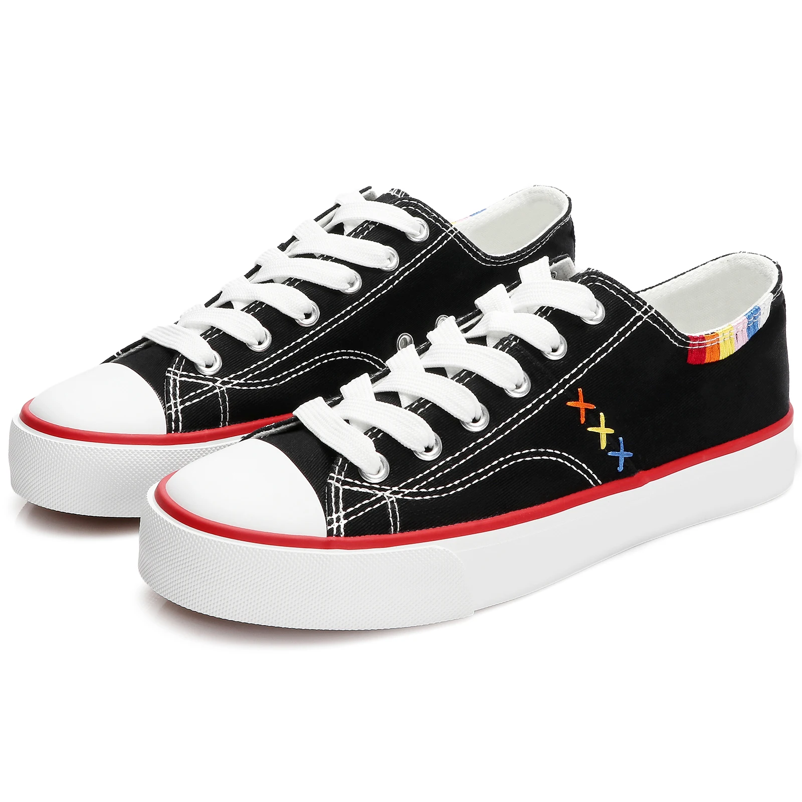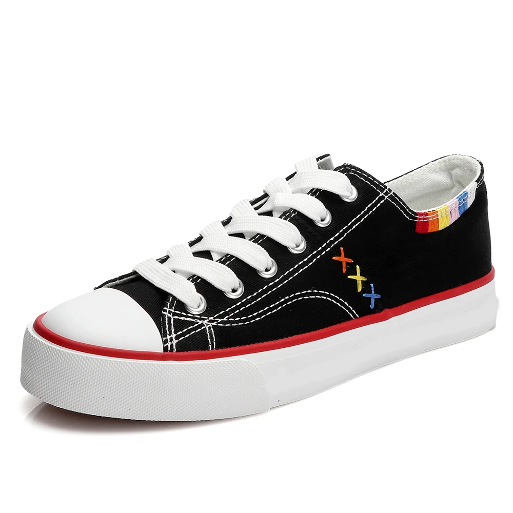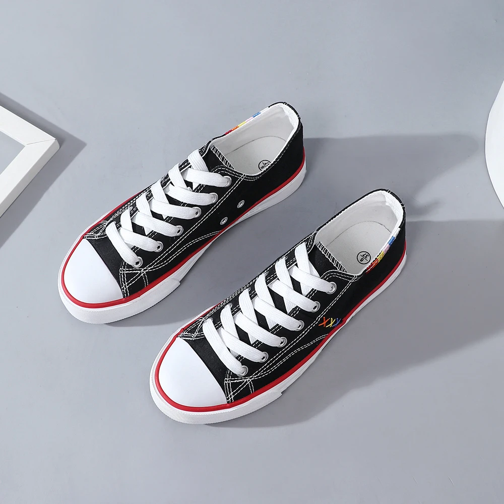 Customizable Hot Selling Women's Low Top Canvas Walking Shoes New Pattern Black and White Sail Cloth Design