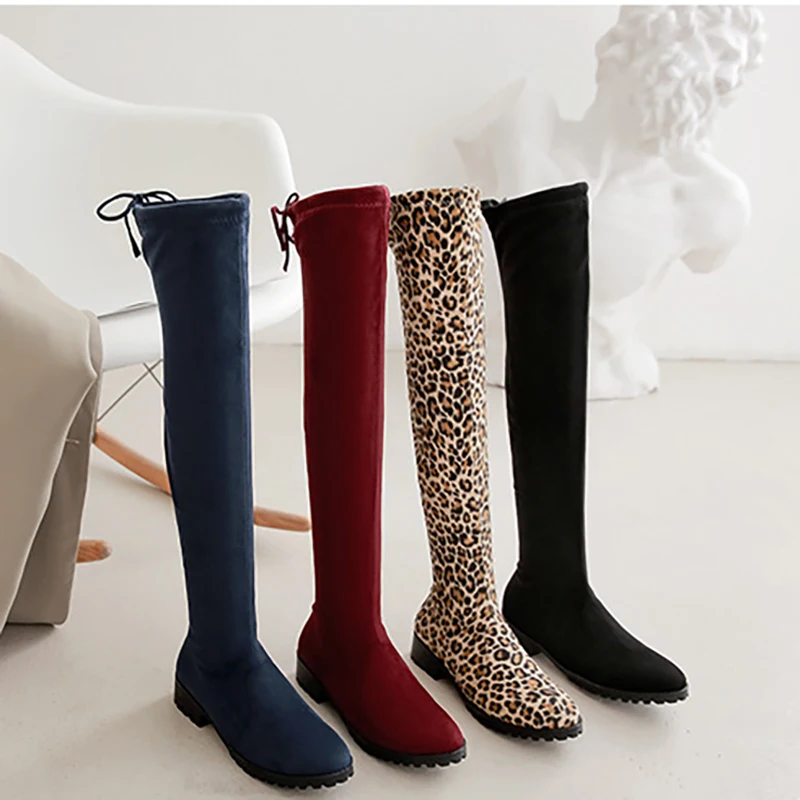 High Quality Men's Women's Leopard Print Thigh High Heels Boots round Toe Chelsea Business Shoes with Zip Closure for Winter