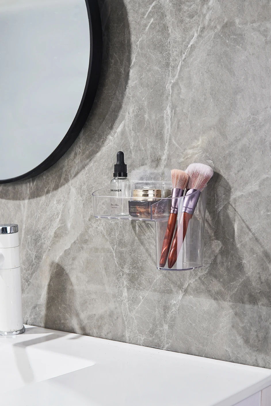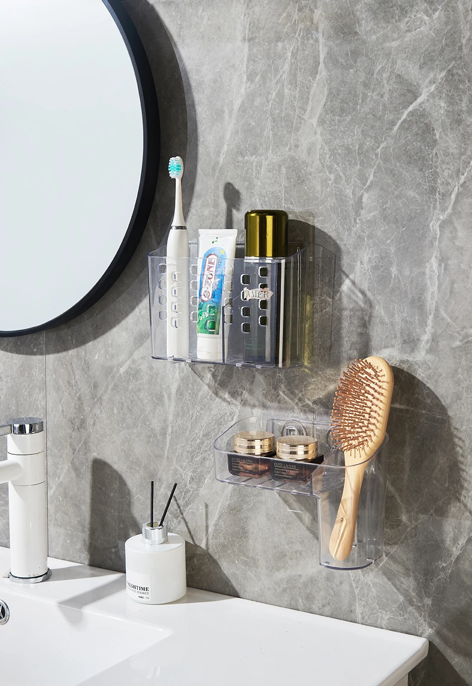 Plastic Wall Mounted Organizer Home Bathroom Storage Box Shower Caddy Clear Toilet Rack
